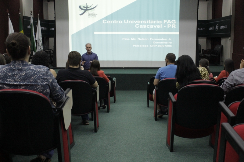 O Conselho Regional de Psicologia do Paraná (CRP-PR), em parceria com o Centro Universitário FAG, realizou na última sexta-feira (06) uma palestra sobre "Psicodiagnóstico: trocando experiência" com o conselheiro e docente da Universidade Tuiuti do Paraná, Nelson Fernandes.
