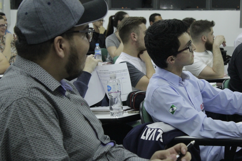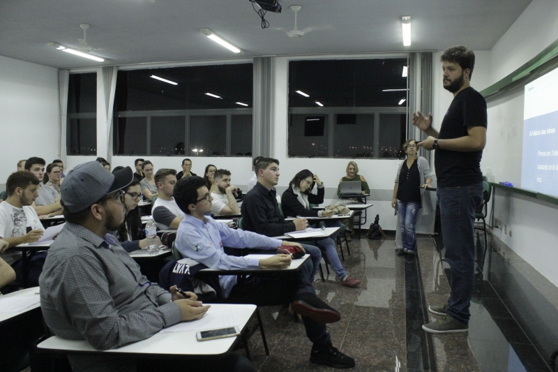 Acadêmicos selecionados para a primeira etapa da primeira fase participaram da atividade com o consultor do Sebrae, Adriano Spanhol, que trouxe o tema: Times e Ideias.