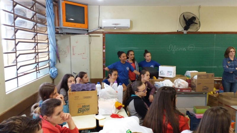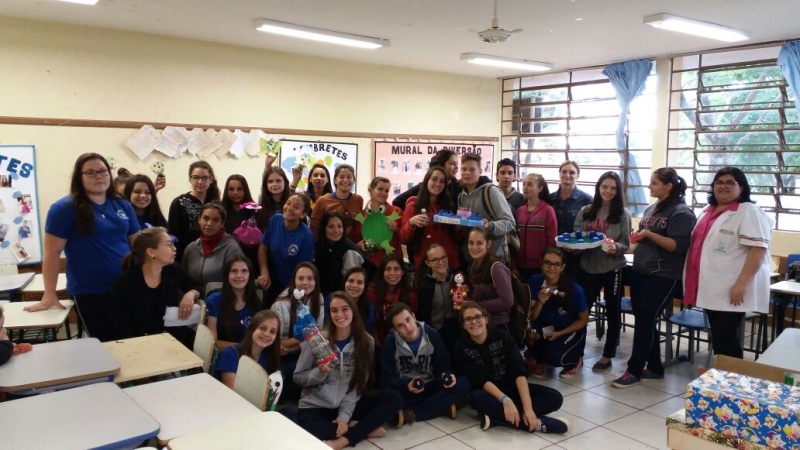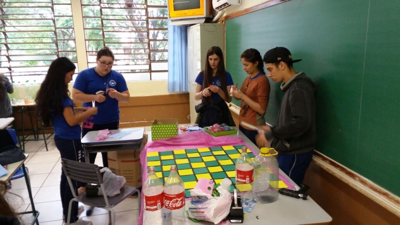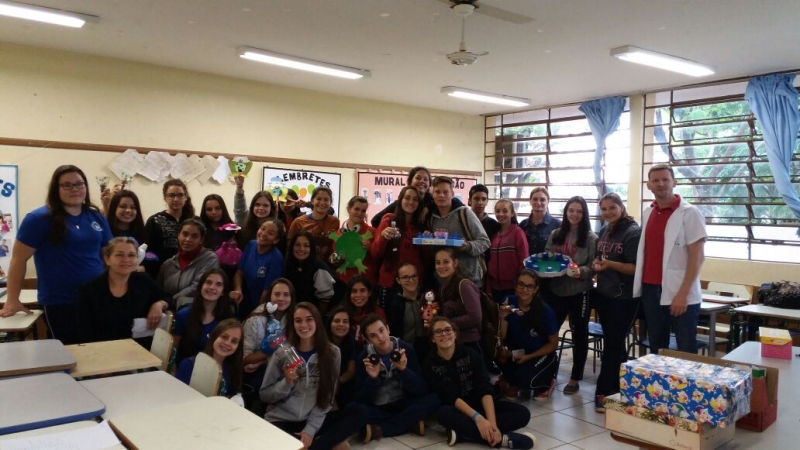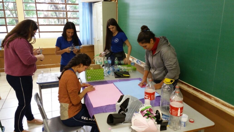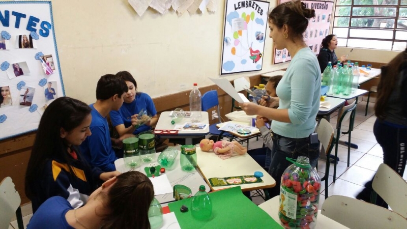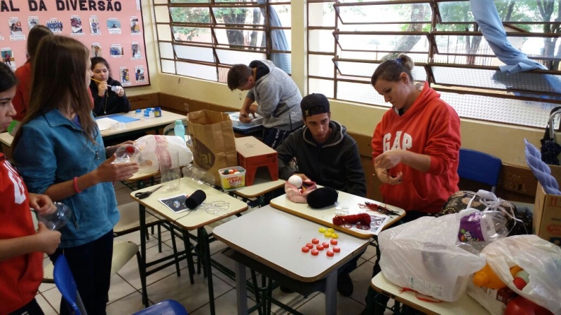 A docente do curso de Pedagogia do Centro FAG, Silvia Cavalheiro, e o coordenador do curso, Paulo Fachin, foram até ao município de Três Barras do Paraná para aplicar uma oficina de produção de brinquedos com sucatas. Mais de 40 estudantes do curso de Formação de Docentes, em Nível Médio, do Colégio Princesa Isabel, participaram da atividade.