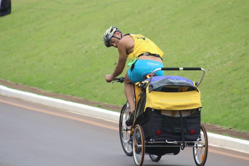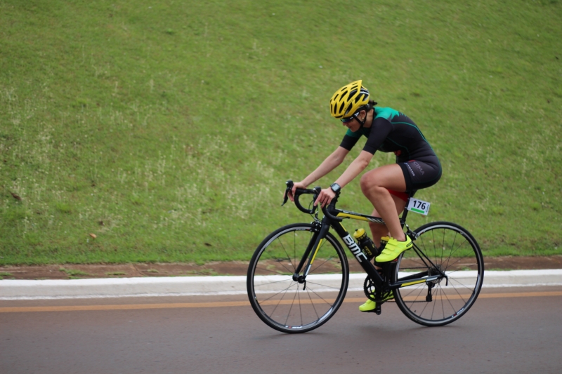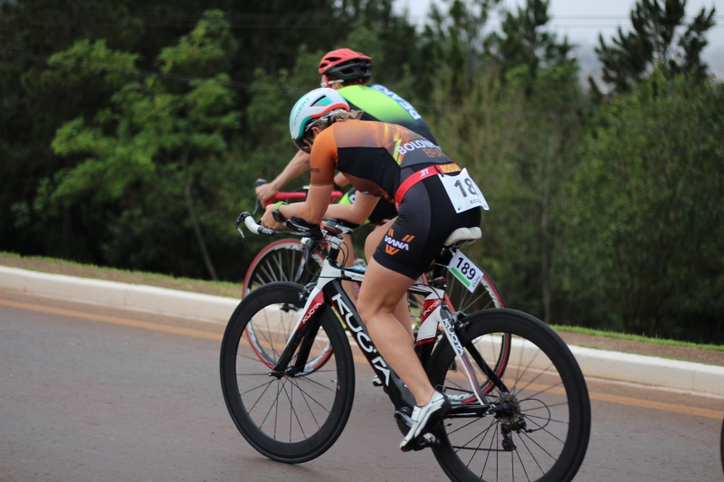A prova começou às 8h deste domingo (15). O primeiro desafio foi a natação. Cerca de 750 metros dentro do Lago Municipal foram atravessados pelos competidores com braçadas, em ritmo forte. Na sequência, foi a vez de pegar as bicicletas na área de transição. Na bike, eles seguiram pela Avenida Rocha Pombo, passaram pela Rua Waldemar Casagrande, acessaram a marginal da BR-277 (sentido Atacado Liderança), fizeram o retorno, desceram pela marginal até o segundo acesso da rodovia, fizeram o retorno novamente e voltaram pela Waldemar Casagrande para recomeçar o percurso. Foram quatro voltas. Na área de transição, deixaram a bicicleta e seguiram para o trecho final da prova: a corrida, feita na pista do próprio Lago.