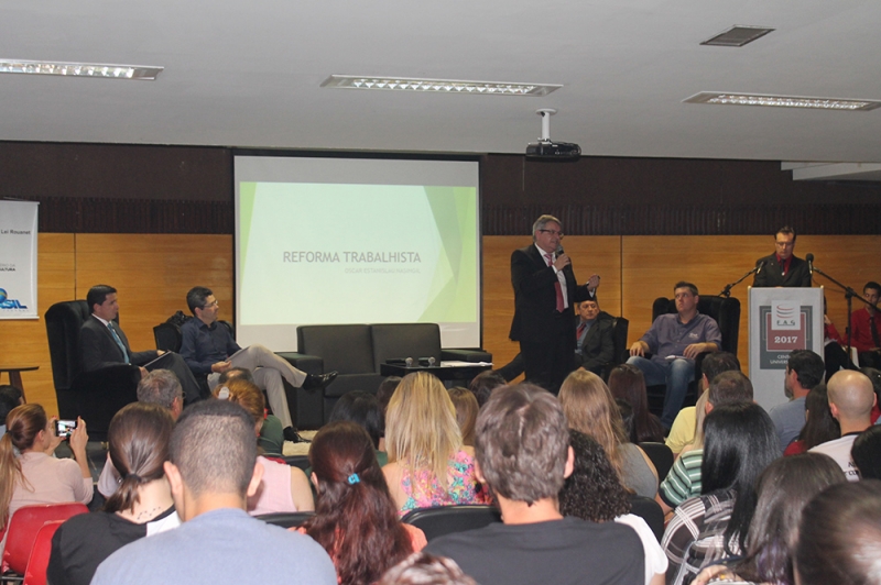 O tema deste ano foi ?Reforma trabalhista: seus prós e contras? e contou com a participação do Juiz da II Vara do Trabalho de Toledo, Dr. Sidnei Cláudio Bueno; o advogado e representante sindical, Dr. Ronaldo Barbosa; o advogado trabalhista, Dr. Oscar Nasihgil; os gerentes dos departamentos de Recursos Humanos da empresa C.Vale ? Cooperativa, Joberson Silva e da BRF Foods, Felipe Maziero. Na mediação esteve o professor Rui Airton Cornelius.