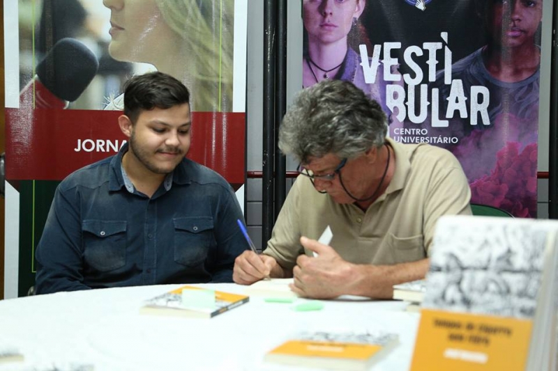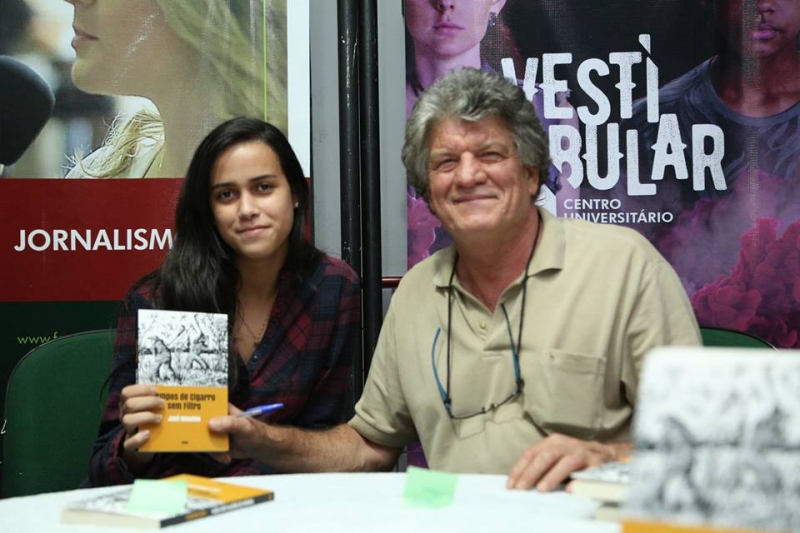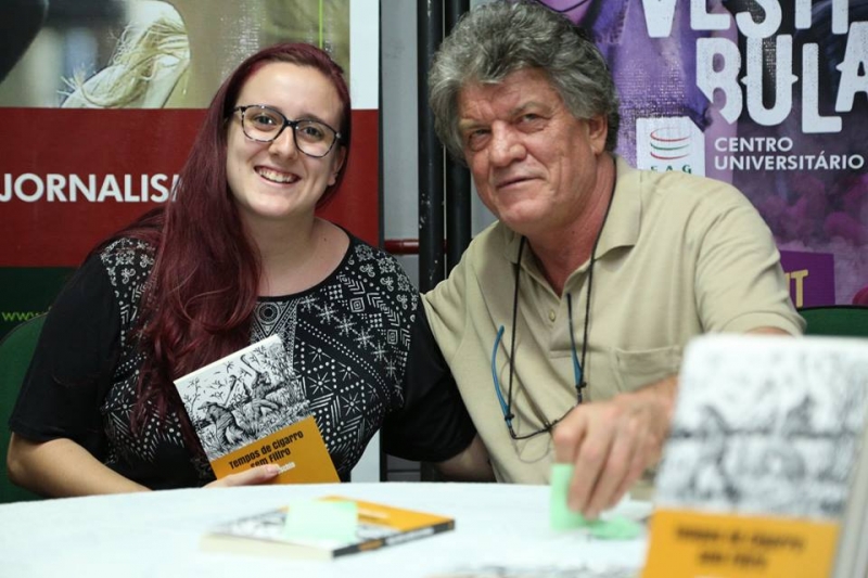 Ontem (17), à noite, acadêmicos dos cursos de Jornalismo, Fotografia e Letras do Centro Universitário FAG participaram do lançamento do livro "Tempos de Cigarro sem Filtro", escrito pelo jornalista, José Maschio. O romance tem como pano de fundo a ditadura militar. Ganchão, como também é conhecido, trouxe reflexões sobre "Jornalismo e literatura: aproximações e distanciamentos". Como jornalista, ele trabalhou em veículos alternativos, emissoras de TV, imprensa sindical e jornais. Foi repórter da Folha de São Paulo até 2010. Lecionou jornalismo na UEL (Universidade Estadual de Londrina) e hoje se dedica a livros reportagens e a experimentação com a linguagem literária.