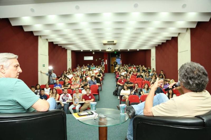 O bate-papo, que aconteceu no Auditório do Bloco I, foi mediado pelo professor e diretor da TV FAG, Luiz Sonda. "Eu e o Ganchão somos amigos de longa data, é sempre bom revê-lo. Essa moçada precisa conhecer histórias de profissionais que acreditam no jornalismo. Sobre o livro? Eu li em três dias e fiquei impressionado com a leveza da escrita, mesmo se tratando de tempos difíceis, como a ditadura militar", revela. A transmissão foi feita ao vivo pelo TV FAG, no canal da emissora e pelas páginas Papo de Jornalista e TV FAG no Facebook.