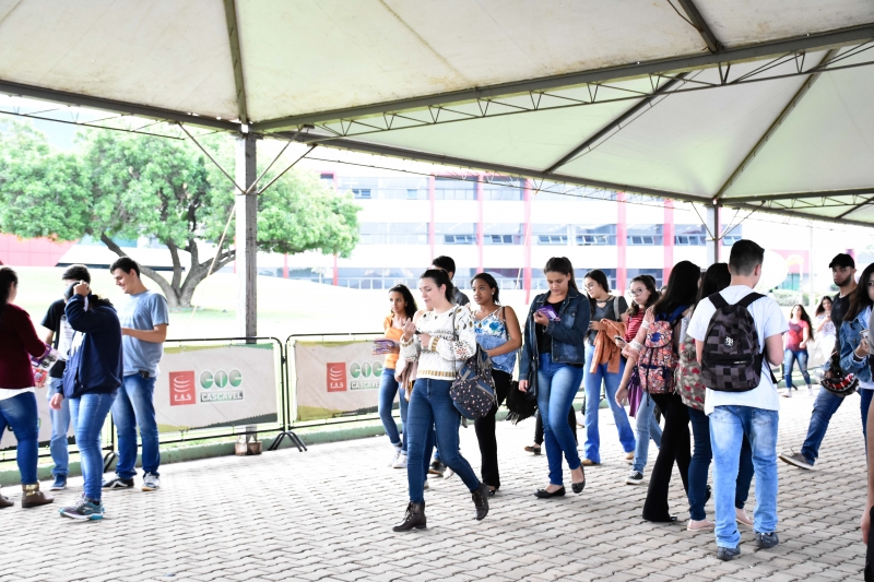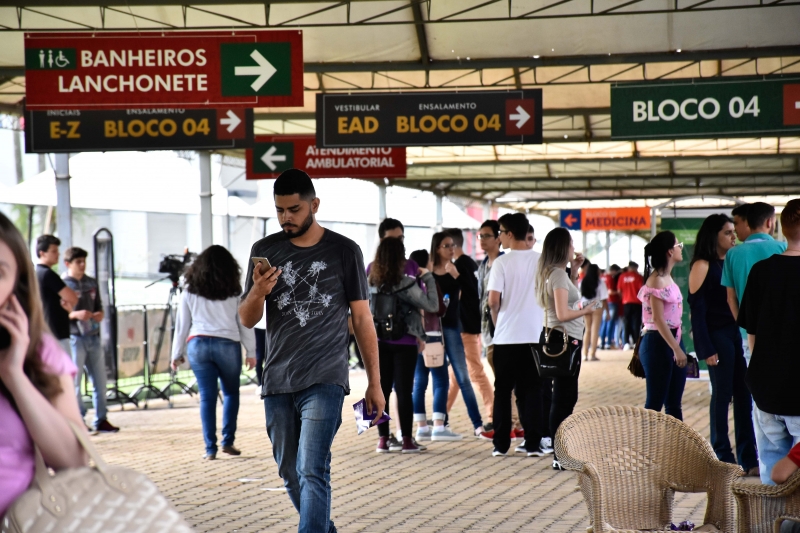 Passado pouco mais de uma hora do início das provas, os candidatos começaram a deixar os locais de prova. Para os candidatos dos cursos presenciais a primeira parte da prova foi composta pela redação. Os vestibulandos escolheram um tema entre as três propostas de escrita: "O aumento de infectados por DST no Brasil", "A doação de órgãos no Brasil e seus principais desafios" e "A geração canguru: acomodados ou adaptados a um novo modo de vida". Para os pretendentes às vagas em Medicina a Parte II foi de 50 questões de múltipla escolha, das quais: 7 questões de Língua Portuguesa, 4 questões de Literatura, 4 questões de Língua Estrangeira: Inglês ou Espanhol, 7 questões de Matemática, 7 questões de Física, 7 questões de Química, 7 questões de Biologia, e 7 questões de Conhecimentos Gerais. Para os candidatos dos demais cursos presenciais, a Parte II foi de 25 questões de múltipla escolha, das quais, 4 questões de Língua Portuguesa, 3 questões de Literatura, 3 questões de Língua estrangeira: Inglês ou Espanhol, 3 questões de Matemática, 3 questões de Física, 3 questões de Química, 3 questões de Biologia, e 3 questões de Conhecimentos Gerais. E, para os candidatos para os cursos EAD, o teste foi uma redação, que tinha os seguintes temas para serem escolhidos: "Os desafios do planejamento familiar no Brasil", "A cultura do 'eu me acho" e "A terapia de reversão da orientação sexual".