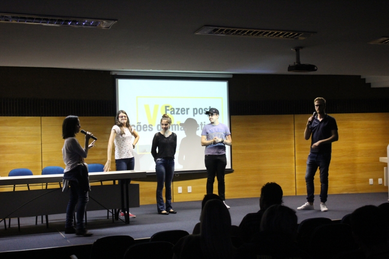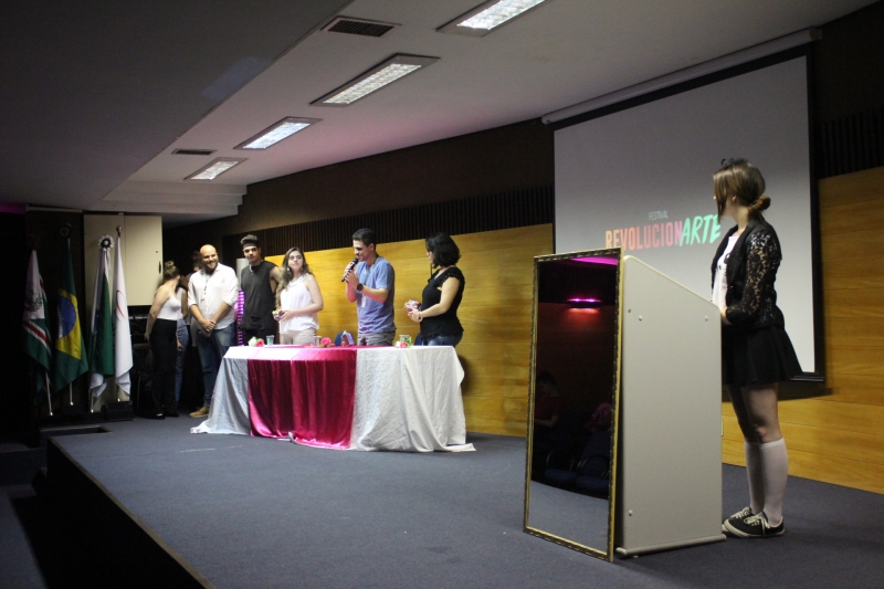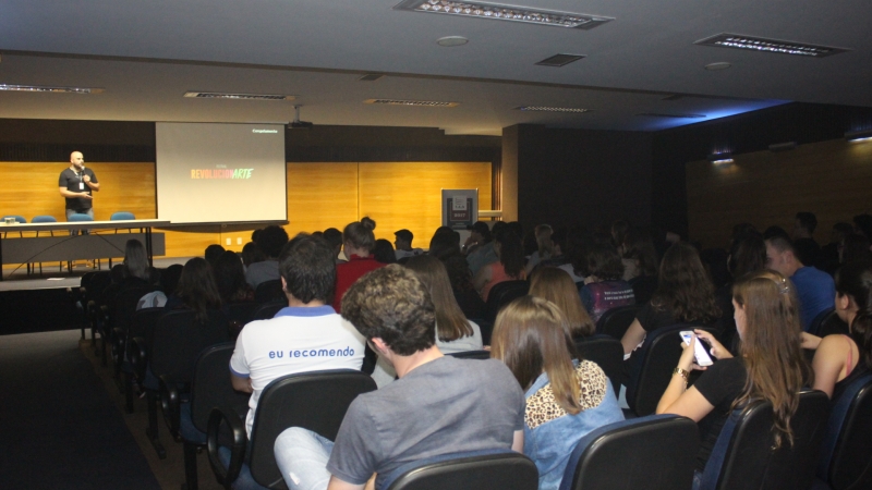 Uma jornada para discutir padrões de comportamento, sociedade, artes, tecnologia e mídia. Este foi o objetivo do Festival Revolucionarte que aconteceu esta semana no auditório do campus Toledo. O evento organizado pelos acadêmicos do 6º período de Publicidade e Propaganda da FAG Toledo apresentou uma série de vídeos publicitários, reportagens e filmes de curta-metragem, intercalando as apresentações com discussões sobre as temáticas. No primeiro dia, o tema apresentado foi relacionado à série ?Black Mirror? do Netflix. ?Aproveitamos alguns assuntos abordados na série para fazer uma reflexão da nossa sociedade atual e jogamos a pergunta: será que estamos exagerando ou usando de forma equivocada as tecnologias que temos nas mãos??, explicou a estudante Larissa Guimarães, responsável pelo cerimonial do evento, que também abordou temas como memes da internet e social mídia.