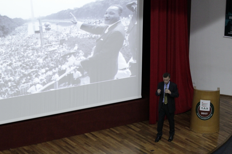 Eckschmidt é empreendedor e inovador, possui mais de 10 prêmios em sua carreira, publicou mais de sete livros, além de ser palestrante internacional. Engenheiro formado pela PUC São Paulo, com MBA na Business School São Paulo. Atualmente é Diretor Geral do Instituto do Capitalismo Consciente, CEO da startup ResolvJa.com.br e mediador da Câmara Latino-americana de Mediação e Arbitragem. Ele começou a palestra traçando as fortes mudanças vividas nos dois últimos séculos na sociedade. "A gente saiu de um mundo muito pequeno, com 1 bilhão de habitantes, as pessoas eram muito pobres, a renda média per capita era de 200 dólares, além de serem doentes, morria todo mundo com uma média de 30 anos de idade. Hoje, somos mais de 7 bilhões de pessoas, com uma renda per capita média de 7 mil dólares e com uma expectativa de vida de mais de 70 anos. Isso foi graças ao capitalismo, graças à revolução industrial e a esses movimentos, que permitiram que as pessoas com seus talentos pudessem criar e atender uma demanda da sociedade em conjunto", expôs.