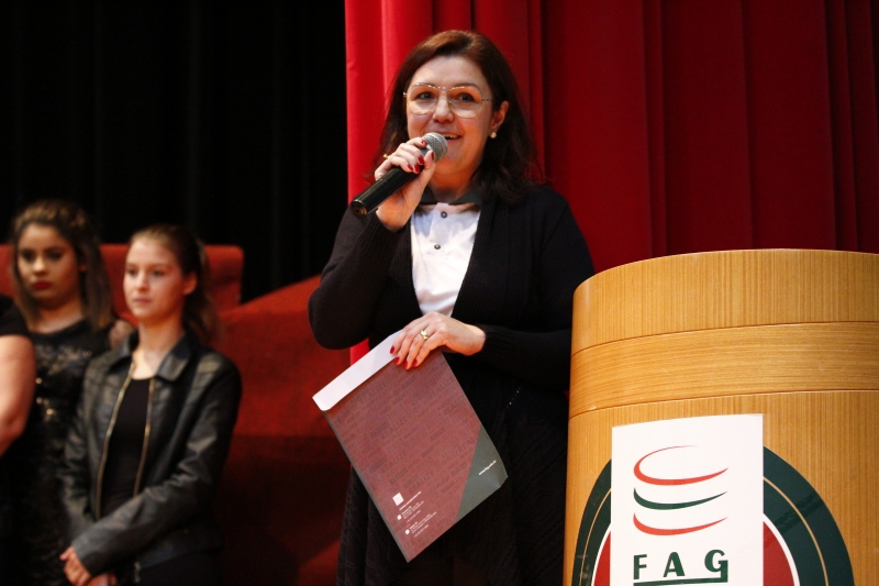 Jéssica Raizi Brito, do 10º período do curso de Psicologia, interpretou a canção de Elis Regina - "Como nossos pais", e foi a mais votada entre as juradas. "Eu canto desde meus oito anos. Sempre gostei de me envolver em eventos como esse aqui na FAG. Estou terminando o curso e considero que com esse reconhecimento estou fechando com 'chave de ouro'. Vejo que isso contribuiu muito no meu crescimento durante a minha graduação", comemora.