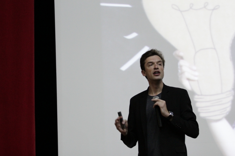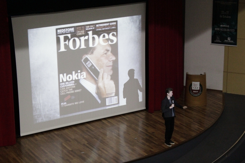 Arthur falou ao público sobre inovação. "A nossa missão como professores é impactar de alguma forma as pessoas. O que é preciso fazer para isso é se conectar com pessoas tão instigadas quanto você, participar de bons grupos, conversar com boas pessoas. Hoje eu tenho uma oportunidade bem interessante que é viajar muito e, portanto, ter contato com diferentes realidades, negócios diferentes. As viagens me dão muitos insumos e insights", conta. "É sempre bom participar de palestras assim. A do Arthur foi muito instigante, ficaria mais tempo ouvindo ele. Considero umas das melhores que participei. O assunto ?inovação? sempre me mexe com a gente", relata Luan Adams Coelho, acadêmico do 8º Período de Fisioterapia.