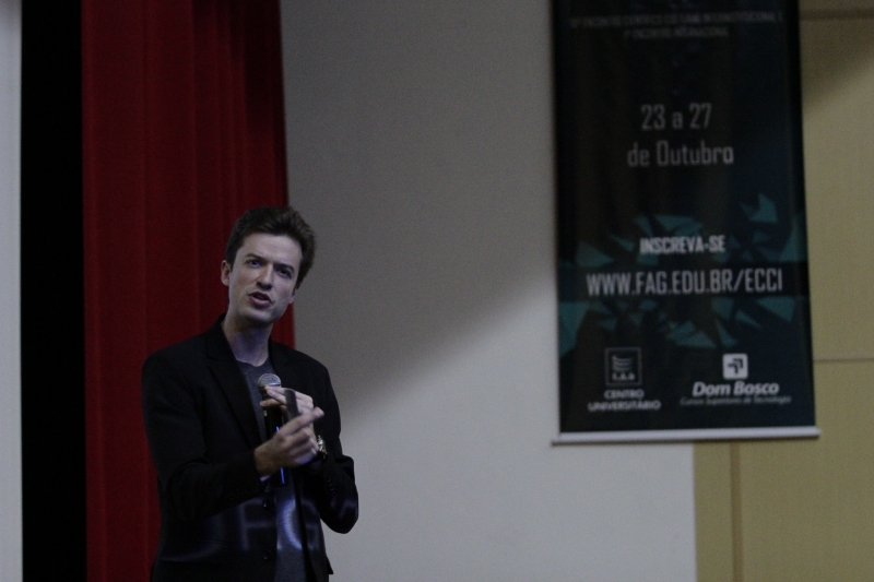 No quarto dia de ECCI (26/10), os participantes foram brindados com duas palestras. Quem abriu a noite foi o egresso do curso de Engenharia de Controle e Automação do Centro Universitário FAG, Arthur Schuler da Igreja. Ele é empresário, investidor anjo e professor da FGV, com experiência profissional e acadêmica em mais de 25 países.