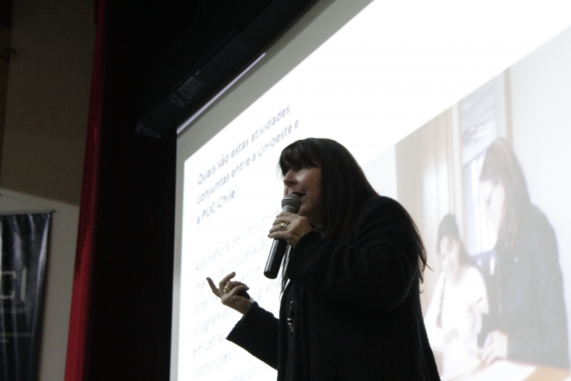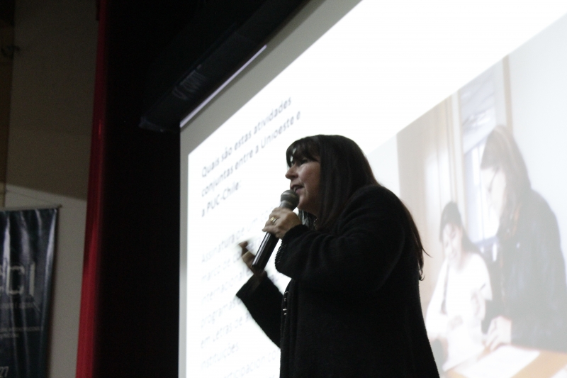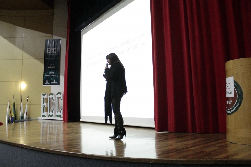 A segunda palestrante da noite foi a Diretora da Escola União Latino-Americana de Idiomas e Presidente da Comissão Examinadora dos Exames de Proficiência de Língua Espanhola fornecidos pelo Ministério de Educação da Espanha e o Instituto Cervantes, Patrícia Cuevas, que é chilena. Ela falou aos acadêmicos sobre Intercâmbio. "Quem está dentro das universidades, tem que procurar por programas de Intercâmbios e, assim, provocar o desenvolvimento do país. O papel das universidades é apoiar e o do estudante é aproveitar essa oportunidade", destaca. "O NRI (Núcleo de Relações Internacionais do Centro Universitário FAG) está se reestruturando para 2018 com o objetivo de lançar convênios com as universidades da América Latina para a realização de intercâmbios", adianta a Coordenadora de Pesquisa e Extensão, Aline Gurgacz Ferreira.
