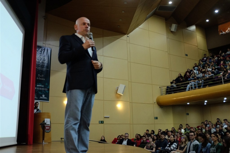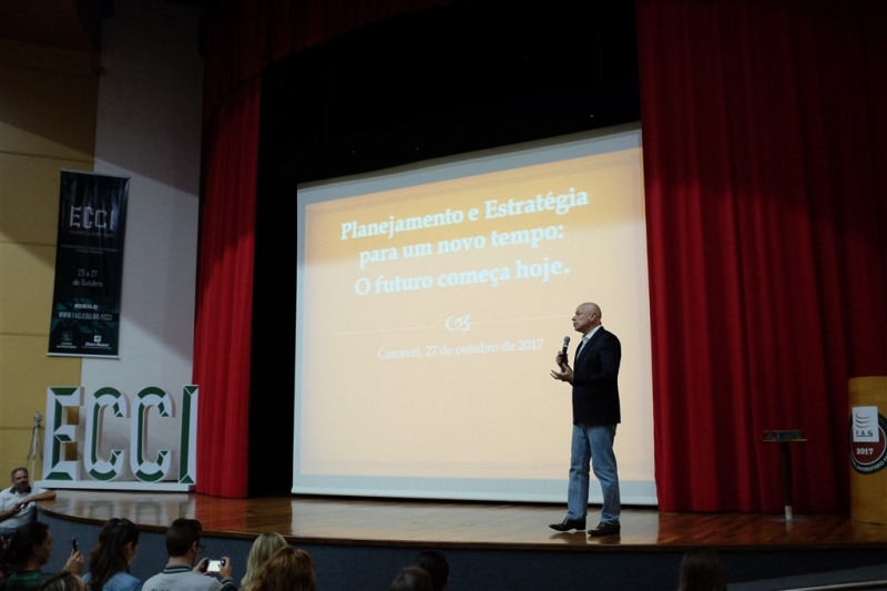 A 15ª edição do ECCI (Encontro Científico Cultural Interinstitucional) do Centro Universitário FAG e da Faculdade Dom Bosco, recebeu na 5ª noite, o historiador brasileiro, Leandro Karnal, que trouxe reflexões sobre estratégias de vida. Segundo Karnal, as pessoas precisam aprender a lidar com os erros, medo e saber ser estratégico na hora de tomar decisões.