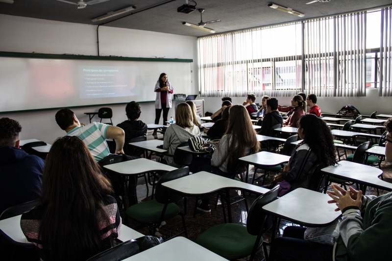 No sábado (28), os professores e acadêmicos do curso de Jornalismo do Centro Universitário FAG receberam no campus de Cascavel cerca de 20 alunos e professores da rede de ensino estadual de ensino médio de Cascavel e região para participação no Projeto Nossa Escola.