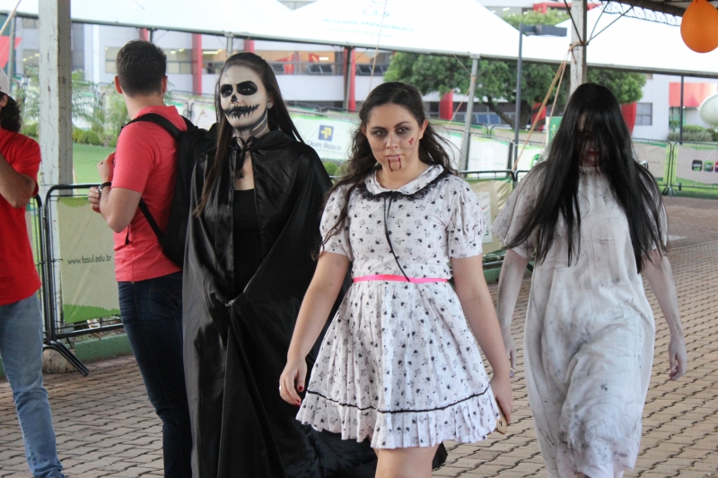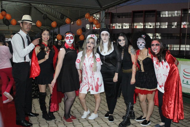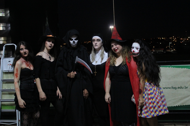 No dia 31 de outubro é celebrado o Haloween ou Dia das Bruxas, tradição praticada há mais de 3 mil anos, iniciada pelos povos Celtas. A palavra "Halloween" foi adaptada ao longo do tempo, por conta do Dia de todos os Santos, comemorado em 1º de novembro, que em inglês significa "All Hallows Eve", cuja abreviação se tornou Halloween. Aqui no Centro Universitário FAG, o curso de Letras não deixou a data passar despercebida e quem percorreu pela Granvia na noite de ontem (31), se deparou com diferentes personagens de filmes de terror, na 7ª edição do Haloween do curso. Os acadêmicos cuidaram de cada detalhe, além de mostrarem suas habilidades na música, dança e interpretação textual.