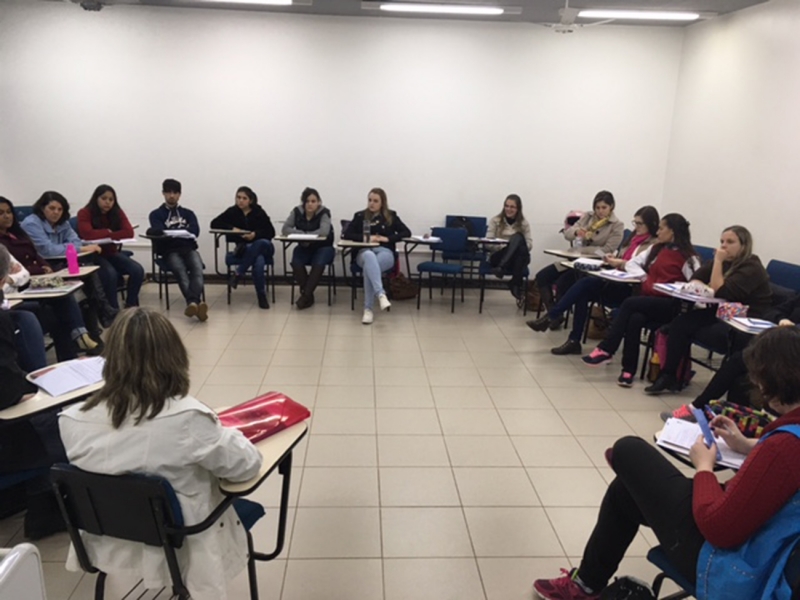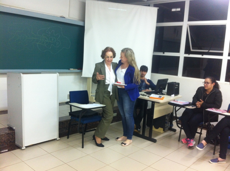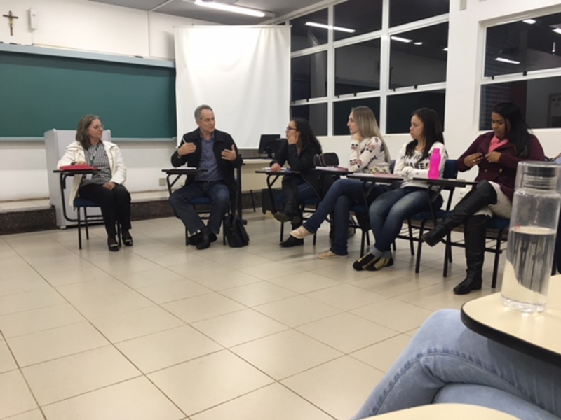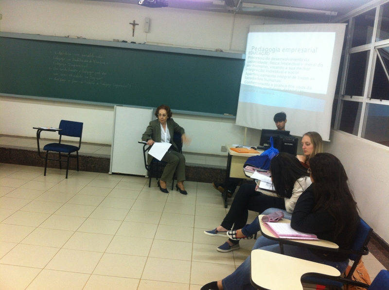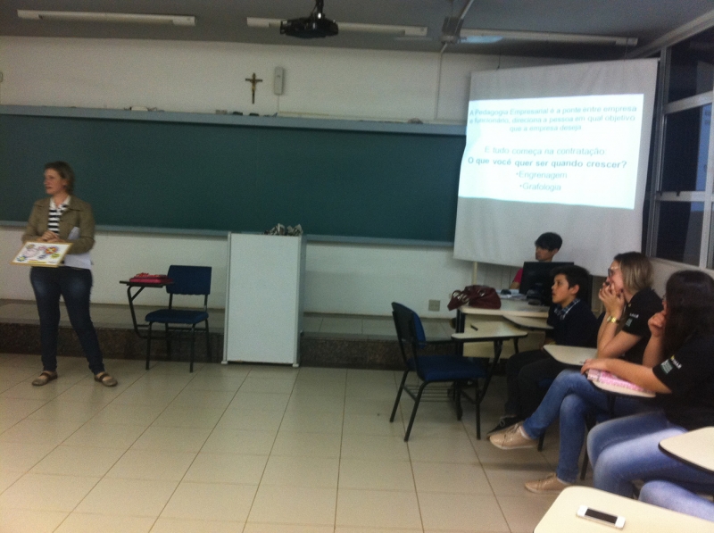 Durante o semestre letivo de 2017/2, na disciplina de Estágio IV - Pedagogia Empresarial, os acadêmicos do 8º período puderam conversar e ouvir diversos profissionais da área empresarial, conhecendo as perspectivas de atuação do Pedagogo em espaços não escolares. A disciplina, que é ministrada pela Professora e Coordenadora do Curso, Doralice Diniz, tem por objetivo proporcionar aos acadêmicos a vivência profissional, preparando-os para atuarem com competência no mercado de trabalho. "Penso que a vinda desses profissionais para a sala de aula conversar com os acadêmicos é uma forma importante de colocá-los diante das exigências que o mercado de trabalho cobra hoje de todos os profissionais. O Pedagogo, hoje, não está apenas na sala de aula ou nas coordenações escolares. É um profissional chamado a atuar em todos os âmbitos da sociedade onde se faça necessário o processo de formação continuada dos profissionais", afirma Doralice.