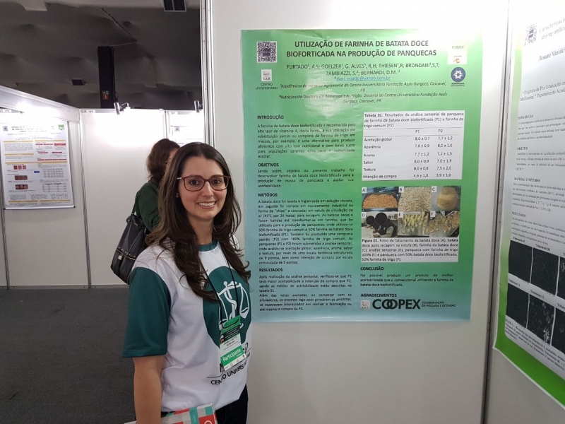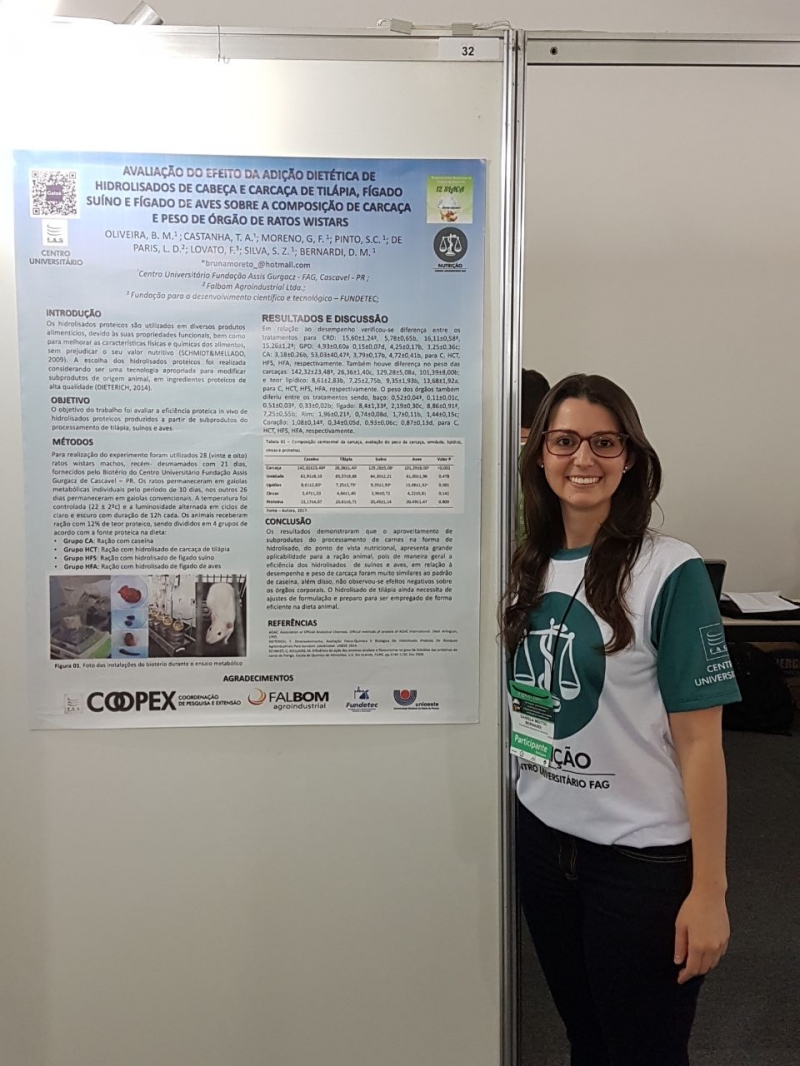 O curso de Nutrição do Centro Universitário FAG esteve bem representado no 12º SLACA (Simpósio Latino-americano de Ciência dos Alimentos). O evento aconteceu em Campinas, entre os dias 04 e 07 de novembro em Campinas-SP, e reuniu profissionais e estudantes da área para entender a importância da Ciência de Alimentos como base para todo desenvolvimento de uma nova forma de produção de alimentos processados, aproveitamento de alimentos in natura e a sua correlação com prevenção de doenças, saúde e fator de bem-estar.