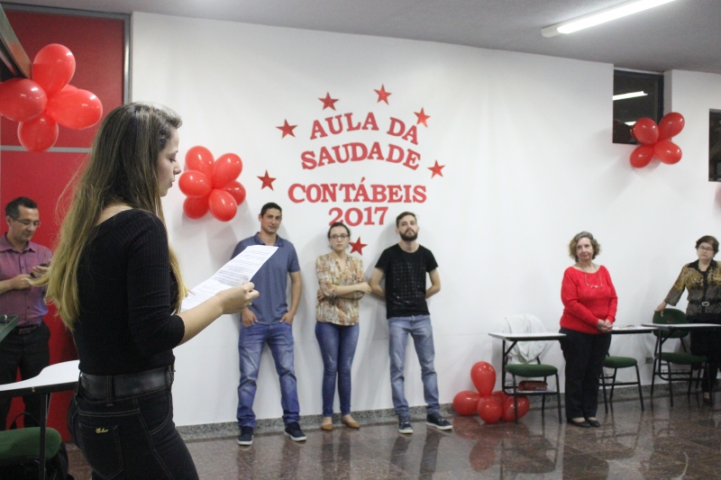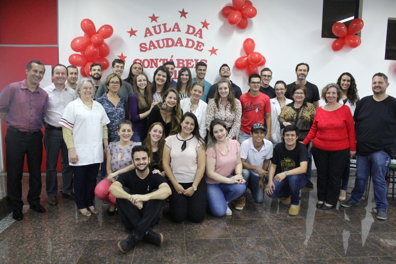 Formandos e professores do curso e Ciências Contábeis do Centro Universitário FAG participaram na noite de quarta-feira (08) da Aula da Saudade. O encontro foi marcado na sala em que os acadêmicos frequentaram no último ano da graduação. A atividade foi organizada pelo professor Josnei de Oliveira Silva. "Esse momento é preparado para que eles sintam saudade mesmo. Saudade das aulas, da faculdade e de todo que vivenciaram nesse período de graduação", relata.