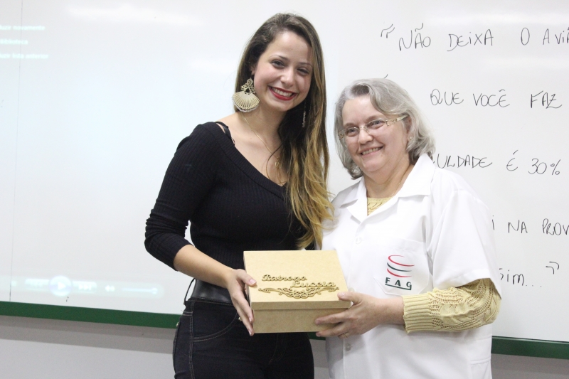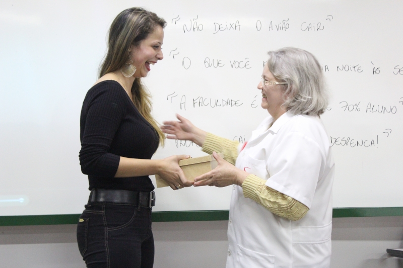 Os professores também foram homenageados e receberam os convites para Nome de Turma, Paraninfo e Patrono. A coordenadora, Marcia Kounrouzan, conta que sempre exigiu muito dos alunos. "Esse é meu jeito, cobro bastante. E o resultado vemos no último período, com pessoas capazes e preparadas para enfrentar o mercado de trabalho. Homenagear os professores é homenagear diretamente a mim, e isso é muito especial. Cada escolha é feita pensando no melhor do aluno. Desejo sucesso a todos", declara.