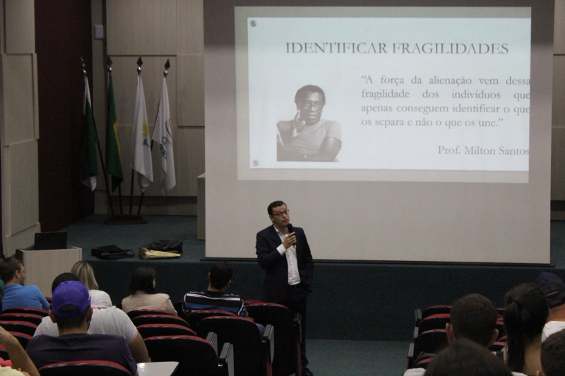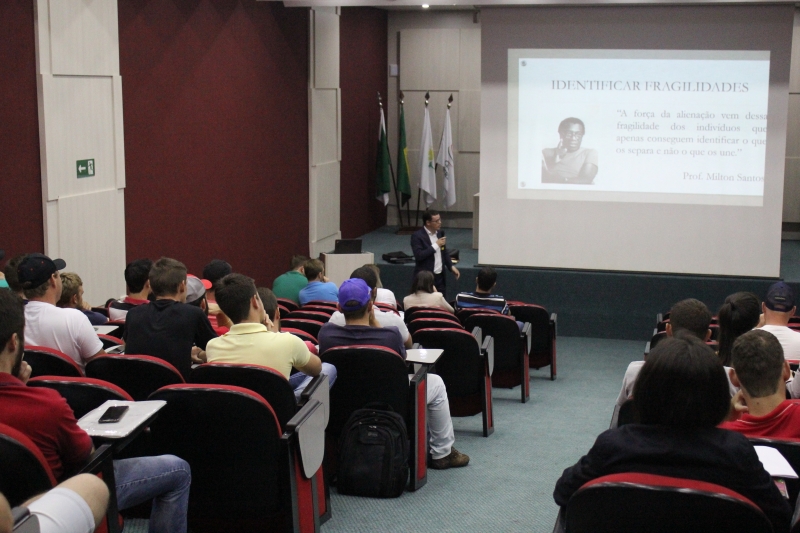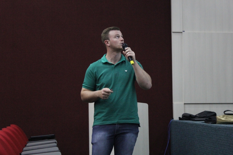O convidado para falar aos alunos foi o Gestor Ambiental da Sanepar, Danielison Pinto, que tratou sobre o tema "Qual é o seu legado". "O processo de ética é desenvolvido ainda durante a capacitação e formação do aluno. A palestra tem muito a ver com o que se foi dito aqui nas apresentações, que é como os cooperados veem as atividades dos alunos e como os alunos querem ser vistos pelos cooperados", explica.