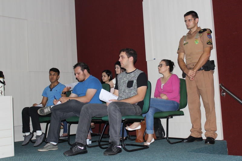 Em análise, estava um caso que realmente aconteceu em Cascavel: um homicídio ocorrido em 2015. "Os alunos foram divididos em três grupos: um para a acusação, outro para presidir a sessão e um terceiro para fazer a defesa. Definimos que faríamos o interrogatório do réu, debates, réplica e tréplica, que são as etapas da sessão do Tribunal do Júri", explica a professora da disciplina em que se trata de peças processuais que dizem respeito ao Tribunal do Júri. Os jurados foram alunos de Direito de outros períodos, que só tiveram a identidade revelada na hora do júri, para manter o suspense característico.