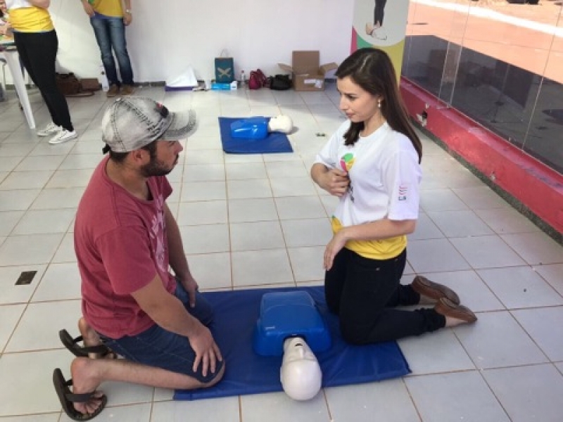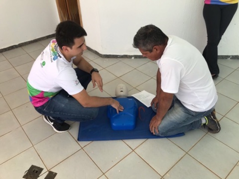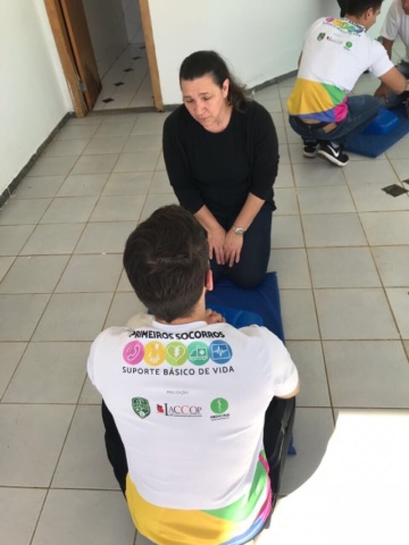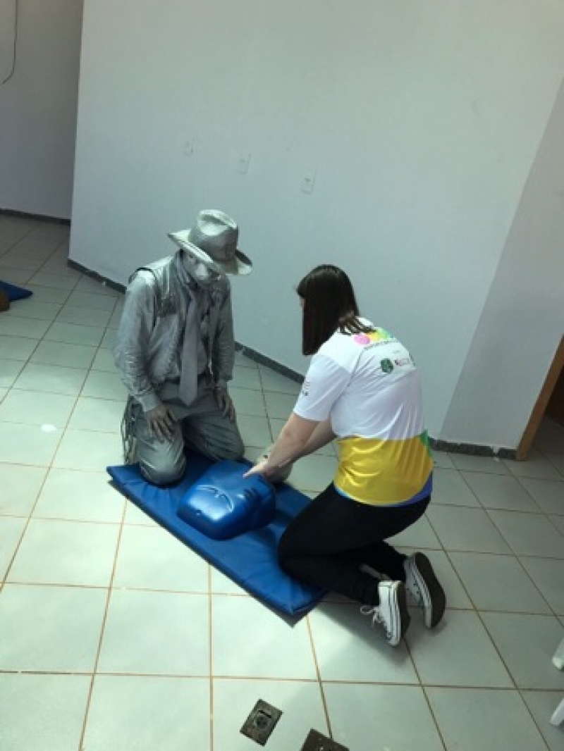 Os alunos ensinaram como detectar uma parada cardiorrespiratória e como fazer uma reanimação cardiopulmonar