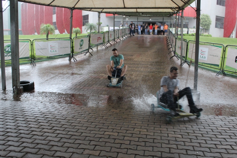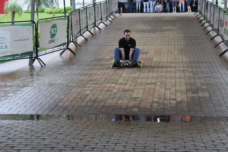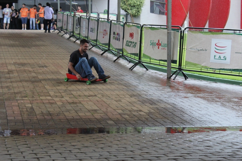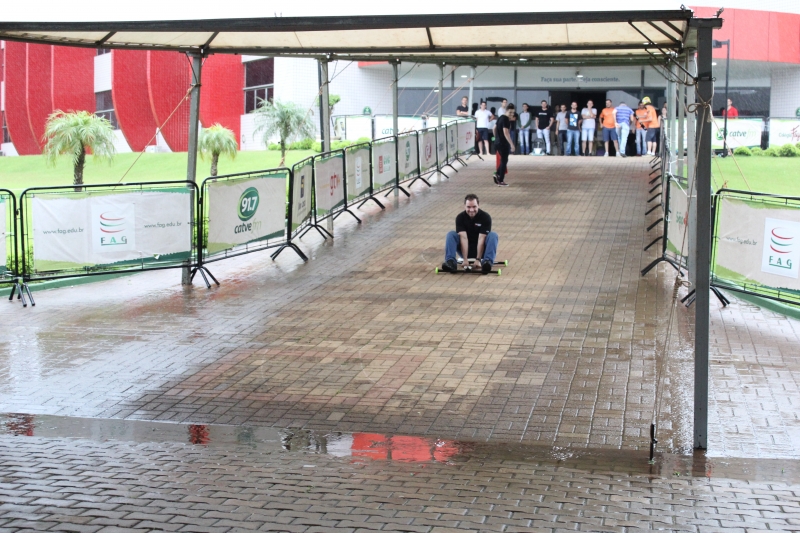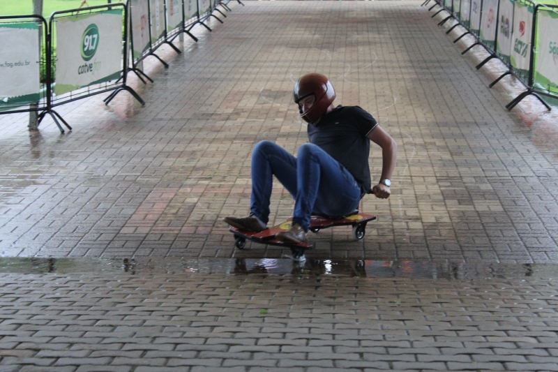 Os alunos usaram a rampa do Bloco I, que dá acesso à Granvia, para testar os brinquedos. Foi uma manhã de diversão entre eles. "Testei praticamente todos. A adrenalina é muito forte, muito bom. Utilizamos diferentes peças. Aprendemos muita coisa: um simples rolimã deu trabalho pra caramba. Foi necessário aprender trabalhar em equipe, mexer com solda, torno, fixação e ainda tivemos que pensar em um design para o carrinho. O mais legal é a parte da doação, muito bom poder contribuir também", descreve o acadêmico, Weslei Dias Amadeo.
