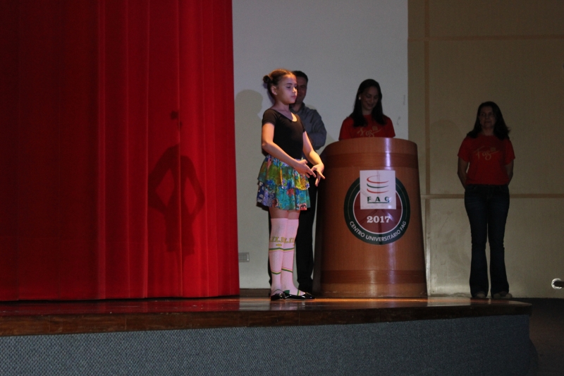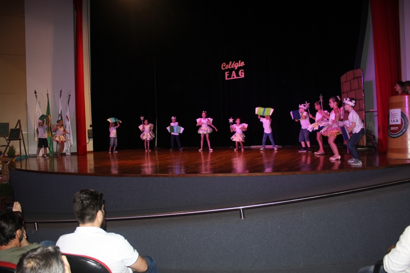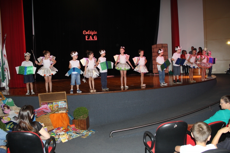 Alunos do 1º ao 5º ano do Colégio FAG subiram ao palco do Anfiteatro da Reitoria e surpreenderam o público presente com apresentações de dança, teatro e declamação de poesias. As decorações e as apresentações foram inspiradas no tema "O fantástico Mundo Literário: Passeando entre as histórias e poesias", proposto pelos professores com incentivo das famílias que apoiam e compreendem a importância da história, da leitura, da imaginação e da criatividade.
