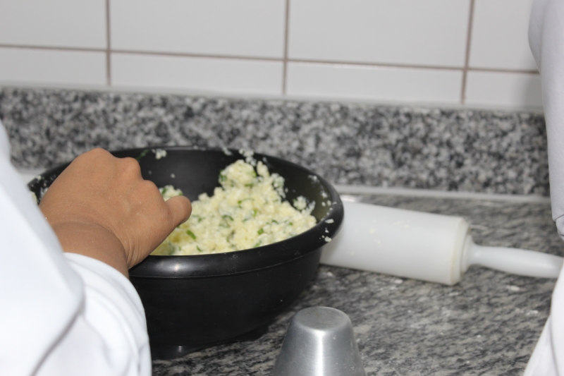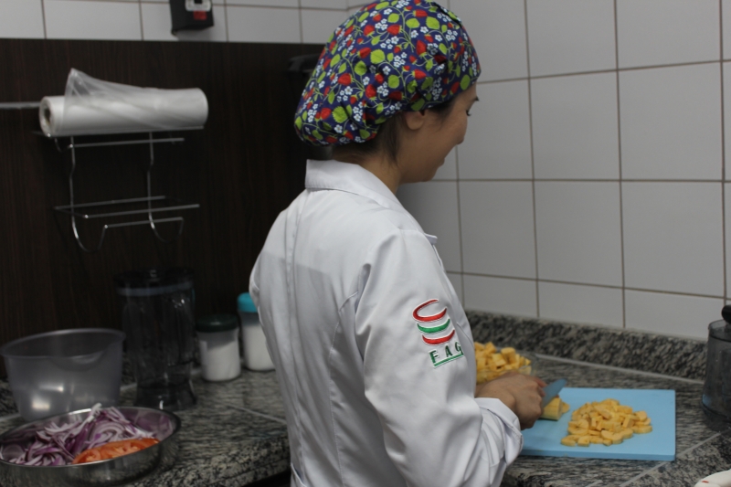O desafio foi fazer pratos de regiões do Brasil e também de outras nacionalidades. "Em um primeiro momento, eles fizeram uma pesquisa sobre os aspectos culturais, as restrições alimentares, a posição geográfica e como isso influenciou nos pratos típicos. O resultado teórico foi apresentado em sala de aula. Agora, viemos para o Laboratório para a parte prática", explica a professora.