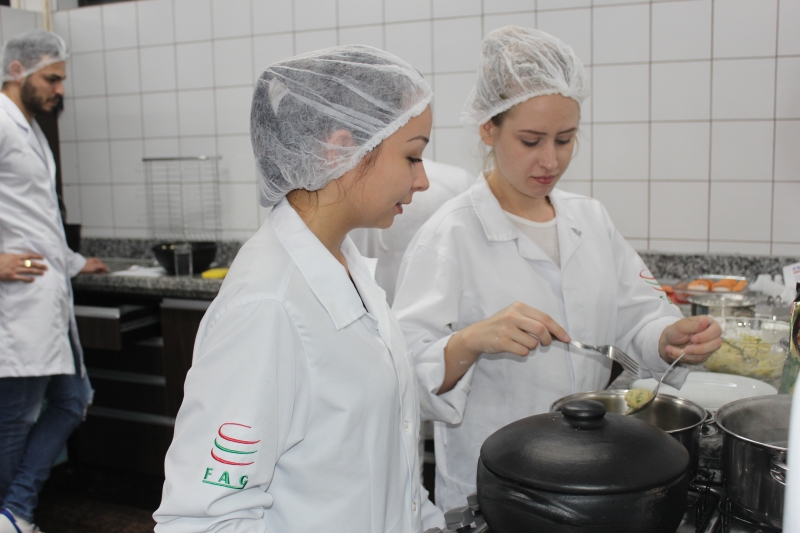A cozinha do Laboratório de Nutrição do Centro Universitário FAG foi palco de muita correria, mas, que no final, rendeu bons resultados. Os acadêmicos do 4º período do curso de Nutrição usaram o espaço para a avaliação final da disciplina de Técnica Dietética Aplicada e Gastronomia, ministrada pela professora, Adriana Hernandes Martins.