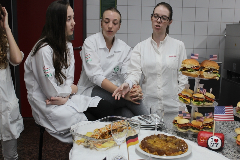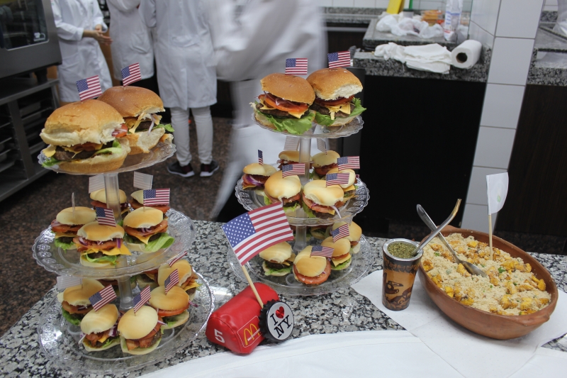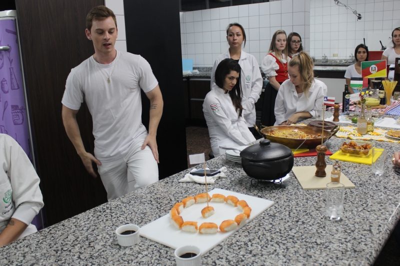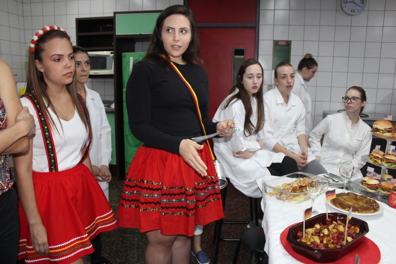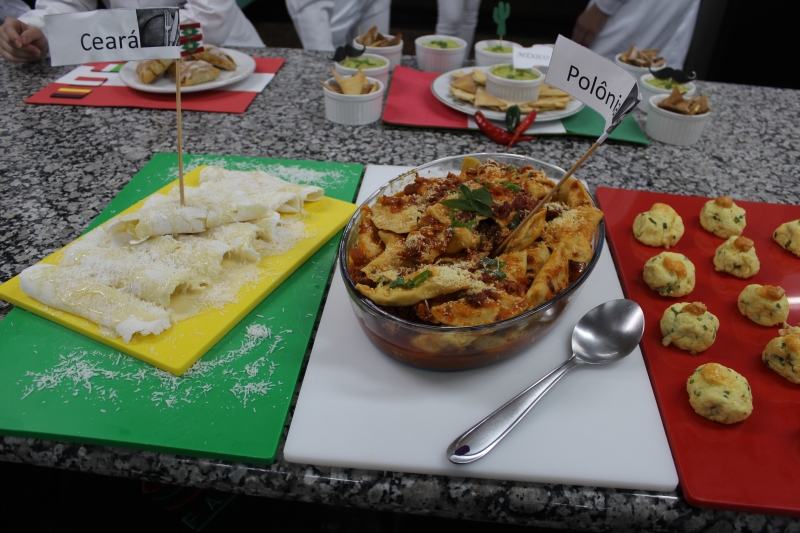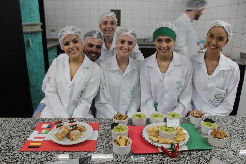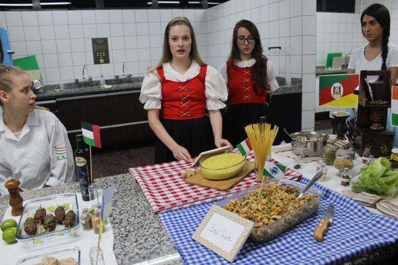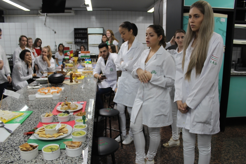 Depois que o prazo de duas horas se encerrou, a cozinha era um misto de aromas. Tinha hambúrguer, torta holandesa, petit gateau, chai indiano, risoto, musse de açaí, feijão tropeiro, niguiri, yakissoba, cocada de castanha, strudel, torta de maçã, linguiça com batata, tortilla, guacamole, tapioca e mais um monte de delícias. Os alunos tiveram que apresentar os pratos e alguns até se caracterizaram para entrar mais no clima. "Achei muito produtiva a atividade. Além de aprendermos a aplicar os cozimentos e preparos, também aprendemos mais sobre as culturas. Descobrimos condimentos e ingredientes diferentes", observa a acadêmica, Fabiana Rodrigues.