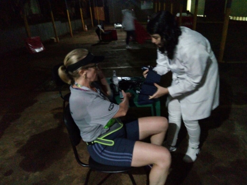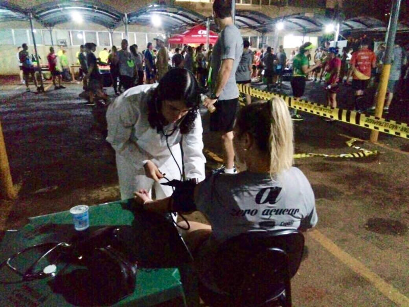 Já na noite do dia 25, os acadêmicos, Jurandir Castanho e Flávia Babara, prestaram assistência aos atletas que participaram da 5ª Corrida do 6º Batalhão da Polícia Militar de Cascavel com orientações a saúde e verificação da glicemia capilar e batimentos cardíacos.