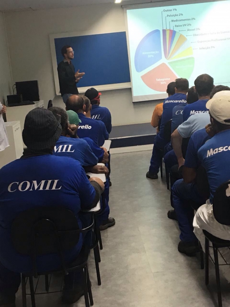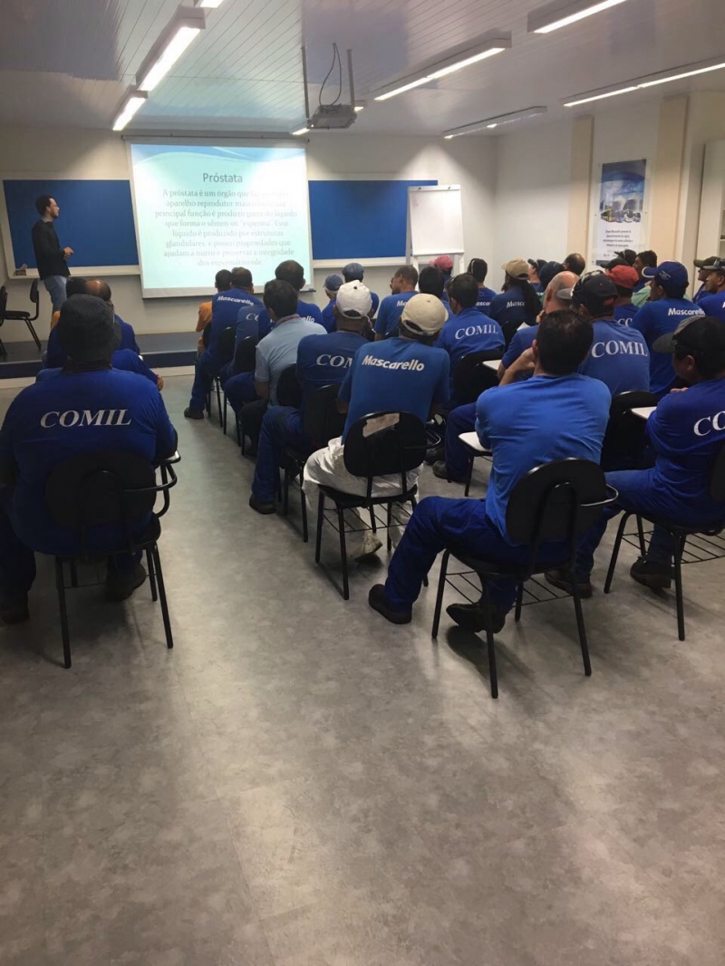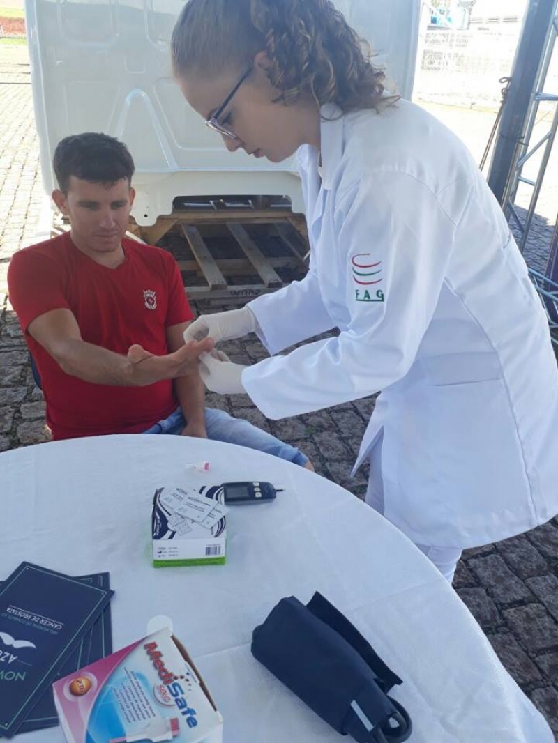 A última semana do mês de novembro foi repleta de atividades de extensão para os acadêmicos do curso de Farmácia do Centro Universitário FAG. No dia 23, enquanto uma equipe graduação, composta pelos alunos, Jocimar Camargo, Aline Senger, Larissa Dal Pozzo, Ana Carla Ribas, Rafaela Cubinski e Jussara Iankoski, prestavam orientações a respeito do uso racional de medicamentos e serviços de verificação de pressão arterial e glicemia capilar para os colaboradores da empresa Icavel veículos (concessionaria de caminhões Volkswagen e Man), o acadêmico Thiago Correia Bandeira ministrava uma palestra sobre prevenção do câncer de próstata, meio à campanha Novembro Azul, para os colaboradores das empresas Mascarello e Comil.