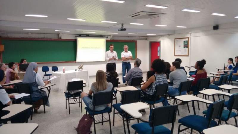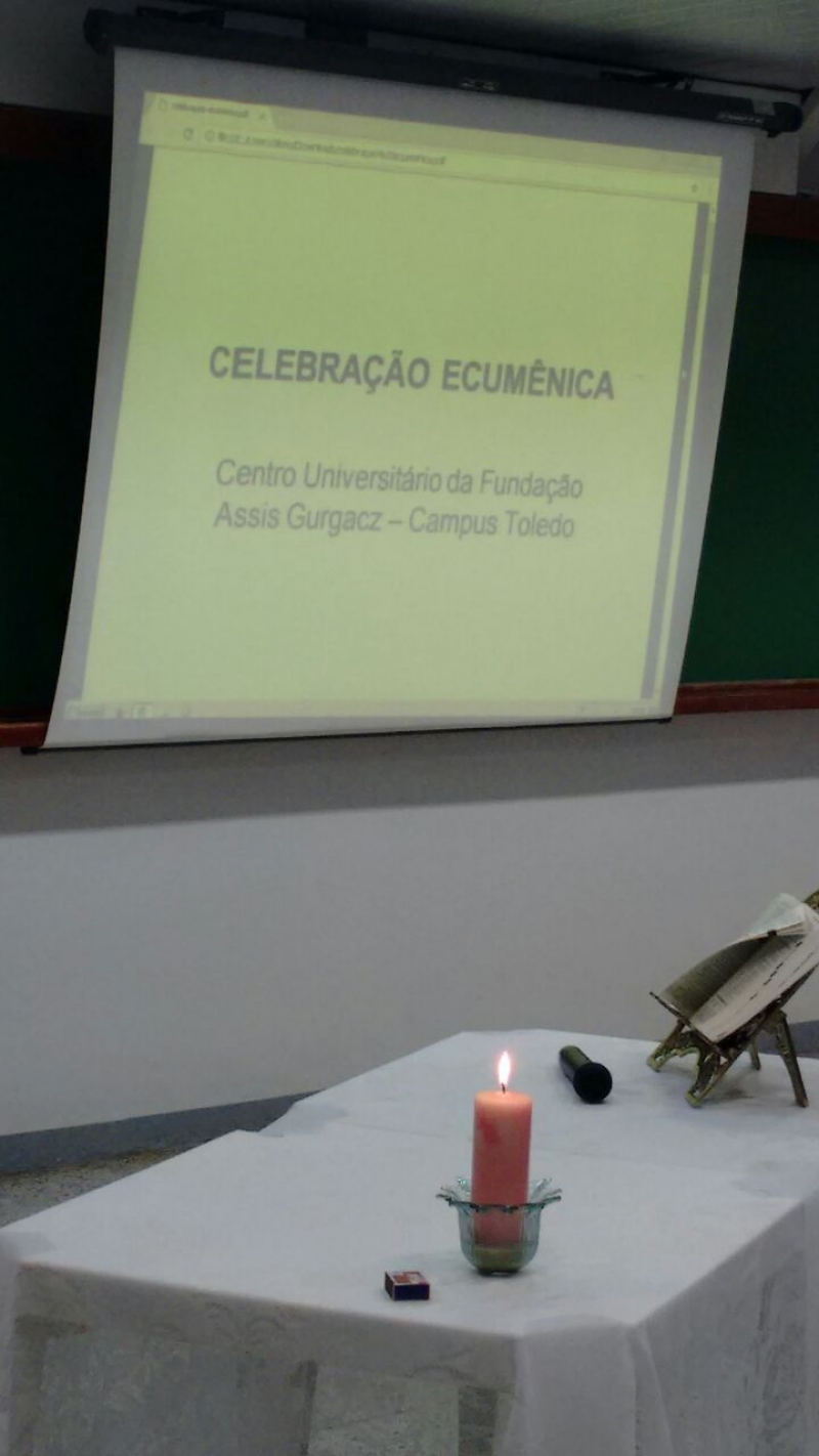 Nesta semana alguns jovens, professores e coordenadores do Centro Universitário FAG, campus Toledo participaram de uma celebração ecumênica realizada na instituição. A celebração foi uma forma de reflexão e agradecimento a Deus pela passagem de mais um ano letivo num momento de simplicidade e unidade. Os participantes desejaram um Santo e Feliz Natal e que em 2018 todos estejam mais vezes reunidos para orar, louvar e agradecer a Deus.