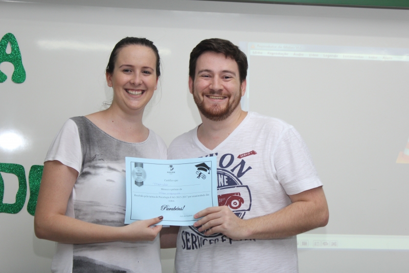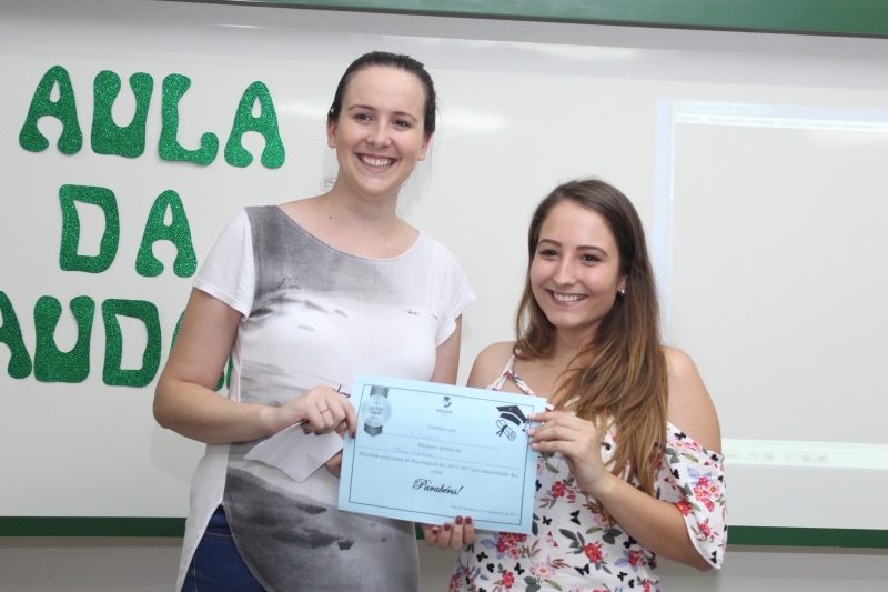 A terça-feira (05) ficou marcada com boas lembranças para os para os formandos do curso de Psicologia do Centro FAG. Os alunos participaram da Aula da Saudade. A noite foi recheada de surpresas e de recordações. Brincadeiras como ?amigo secreto? e votação para o acadêmico mais dedicado, mais estudioso, mais turista e etc, foram realizadas. Os professore completaram a atividade com mensagens de carinho para os novos psicólogos.