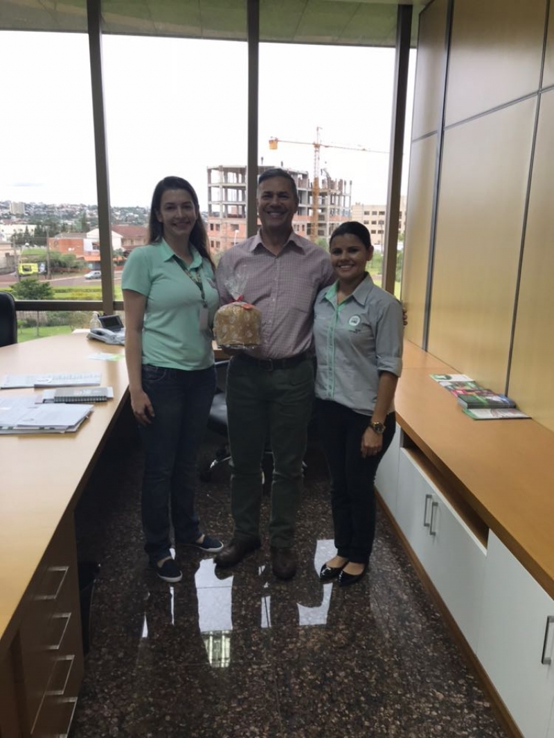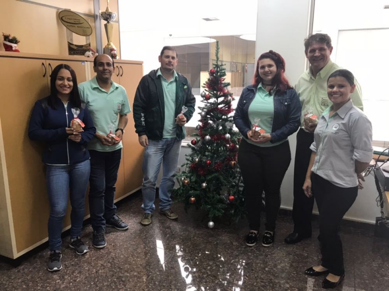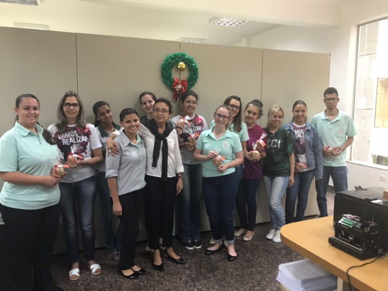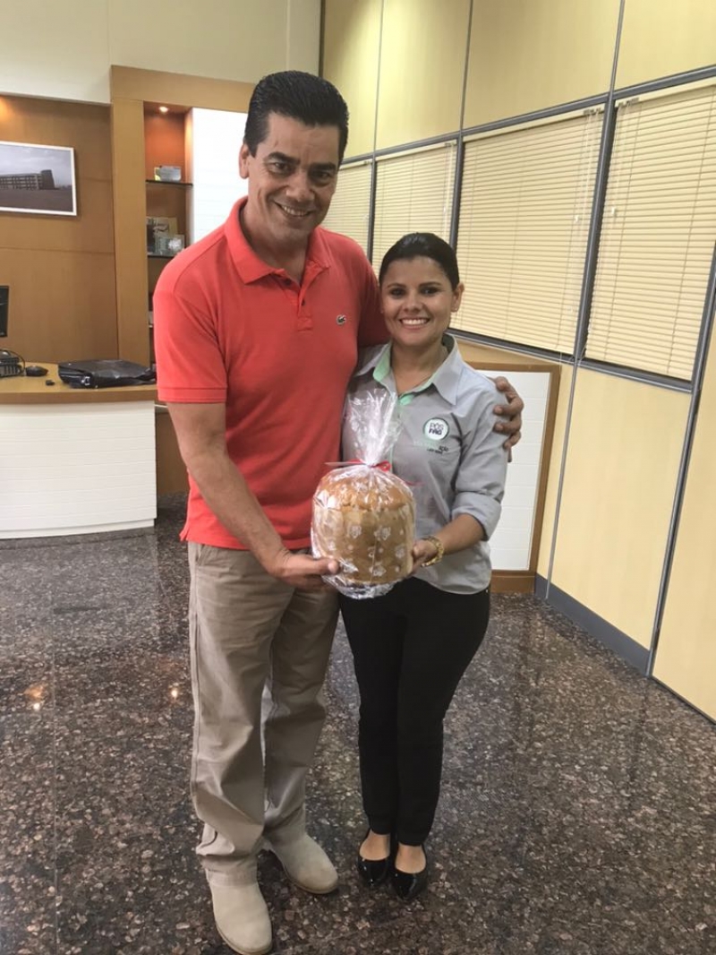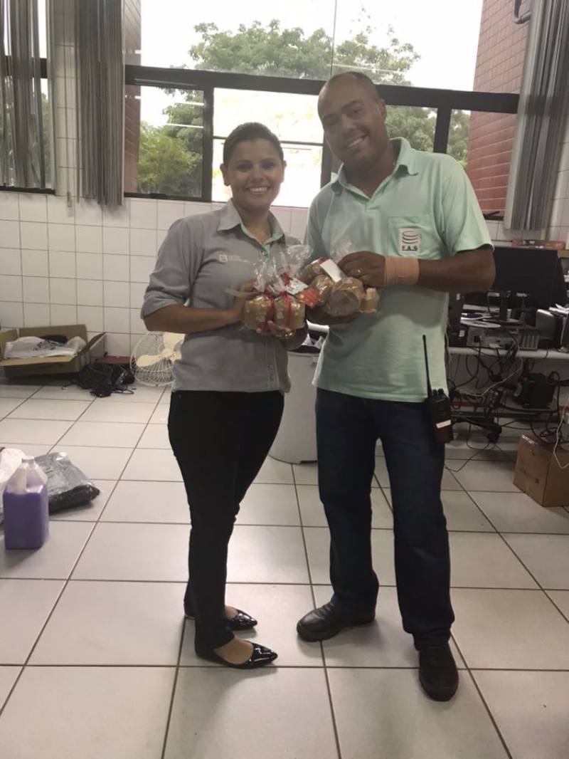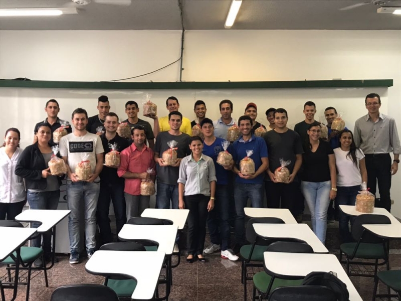 Funcionários do Centro Universitário FAG foram presenteados com panetones, produzidos pelos alunos durante uma aula do curso de Moagem de Trigo Nacional, coordenado pelo professor, Dermânio Tadeu.
