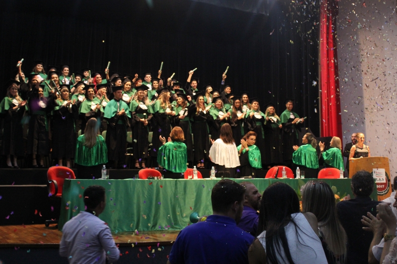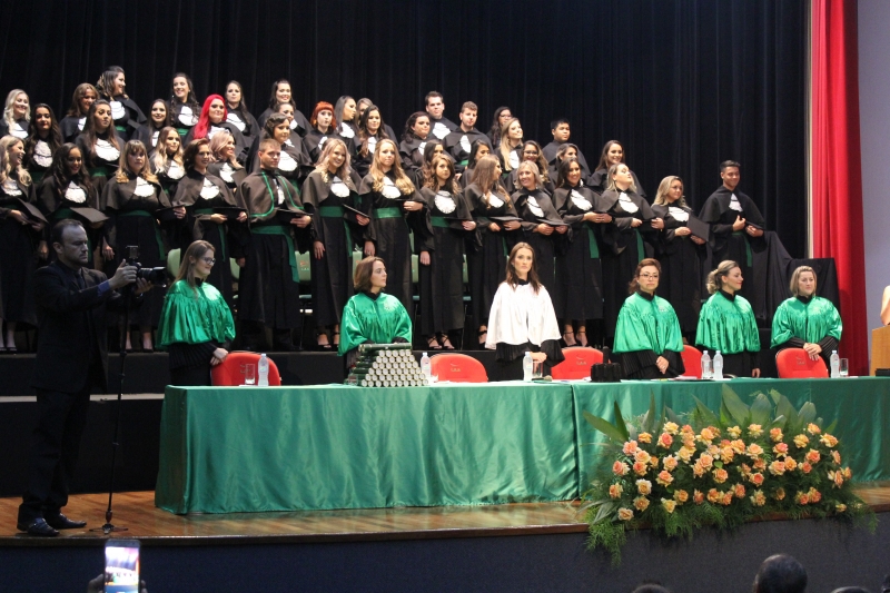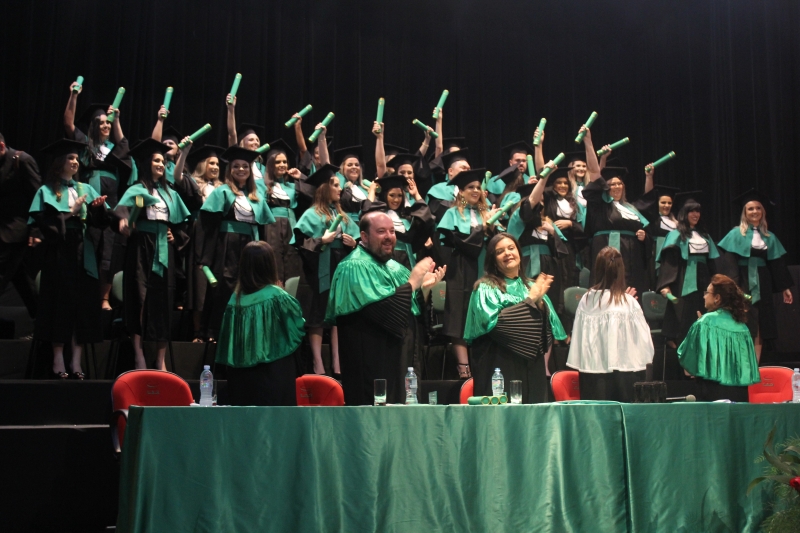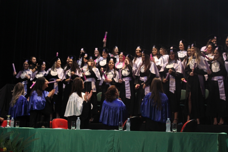 Abrindo a temporada de colações de grau do Centro Universitário FAG, formandos do curso de Enfermagem subiram ao palco do Anfiteatro da Reitoria, na terça-feira (19), à noite, e receberam a outorga de grau. No dia seguinte, 20, à tarde, foi à vez das meninas do curso de Estética e Cosmética, da Faculdade Dom Bosco receberem os canudos. Na mesma data, à noite, a turma de Fisioterapia do Centro FAG, recebeu os diplomas.