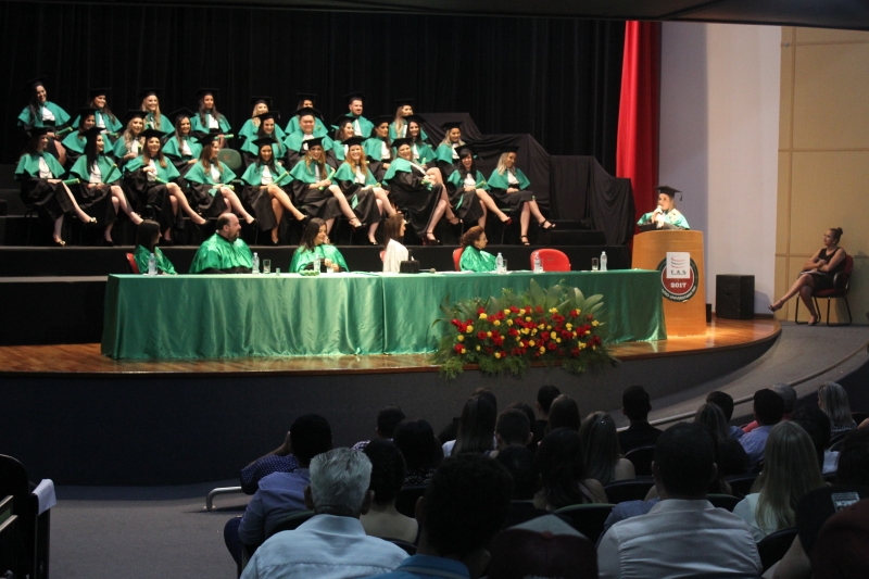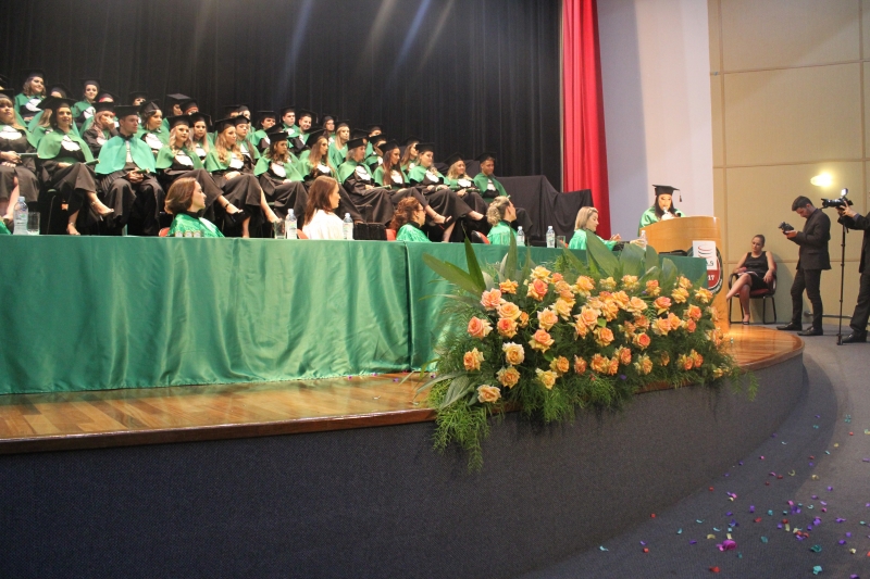 Os representantes de turmas, em seus discursos, declaram muita gratidão pela experiência vivida durante a graduação. "Agradecemos nossos pais, irmãos, familiares, amigos, professores e Deus por termos chegado até aqui. Estamos dividindo uma conquista com eles. Foram quatro anos de diversos sentimentos", descreve a formanda do curso de Enfermagem, Stefani Carolina Pontes Palacio. "Somos gratas por todos os momentos vividos que serão guardados em nossos corações. Hoje é um dos dias mais importantes das nossas vidas. Foram três anos de muita dedicação", manifestaram as formandas de Estética, Flávia Tesser da Rosa e Tássya Lazzarotto Penteado.