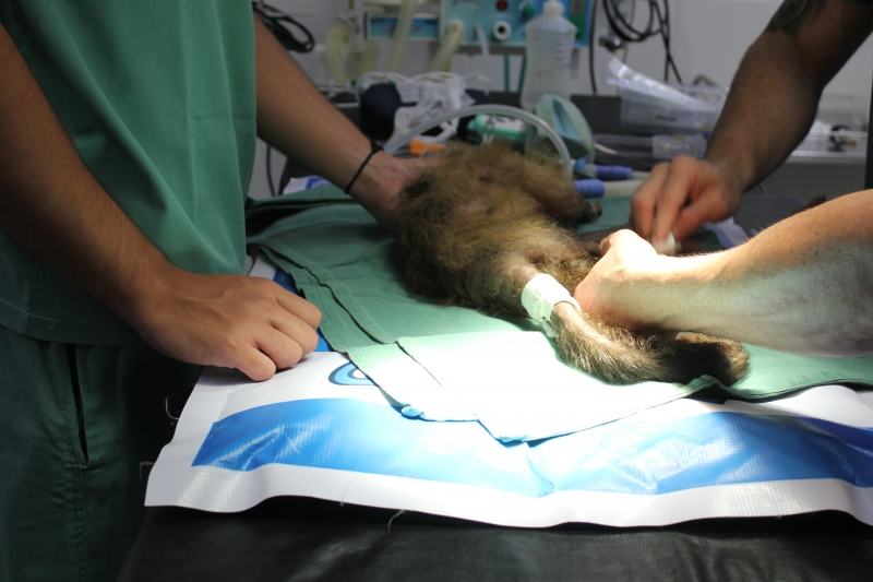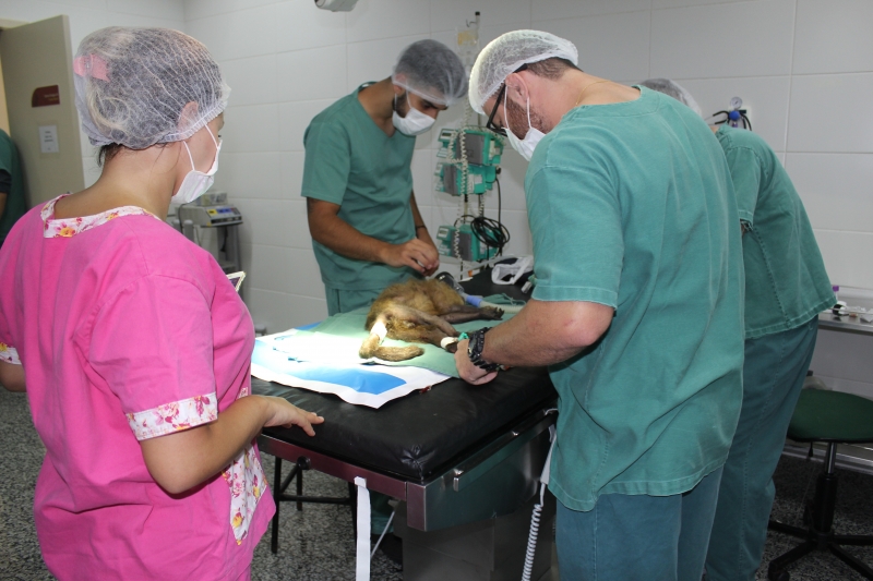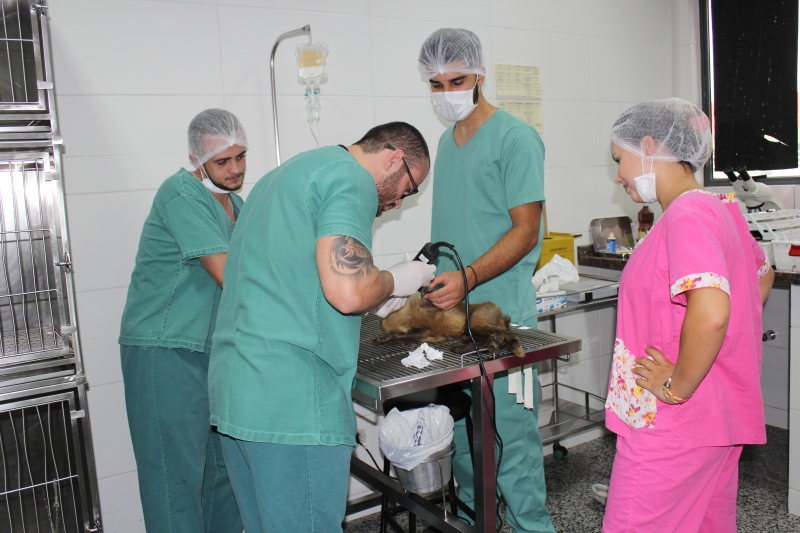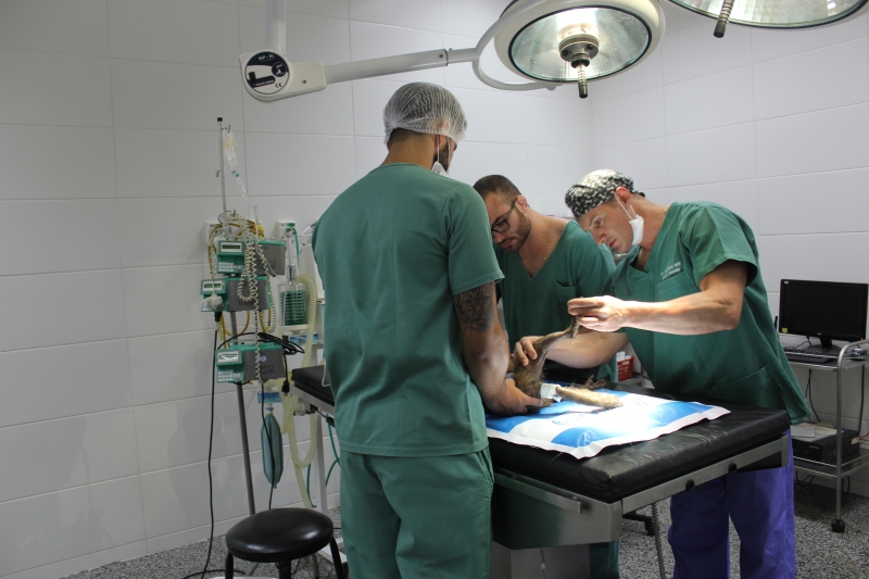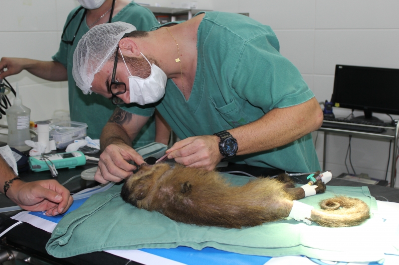 Guri foi levado ao centro cirúrgico de pequenos animais para uma osteossíntese (cirurgia ortopédica). O procedimento foi conduzido pelo médico veterinário do Hospital, Rodrigo Neca Ribeiro, e pelo médico veterinário da clínica Ortho Rios, Alexandre Rios. "Após a cirurgia, o macaco já segue para o Zoológico, onde deverá ficar isolado por aproximadamente 30 dias para recuperação. Ele será medicado com analgésico e com um modulador de comportamento, para que fique mais calmo", explica Rios. Todos os passos foram acompanhados por acadêmicos de Medicina Veterinário do Centro FAG.