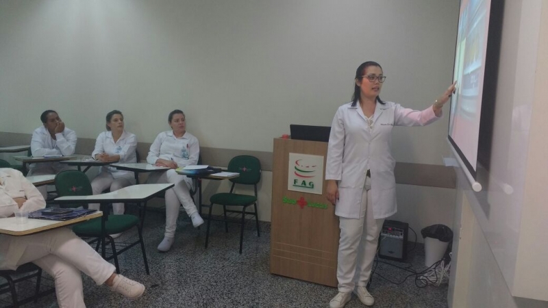 A acadêmica do 8º período do curso de Enfermagem do Centro FAG, Vanessa Lima de Souza Lopes, promoveu uma capacitação sobre segurança transfusional. A atividade faz parte do projeto de extensão intitulado "A Assistência da Enfermagem no Ato Transfusional", coordenada pela professora, Neusa Tolotti.
