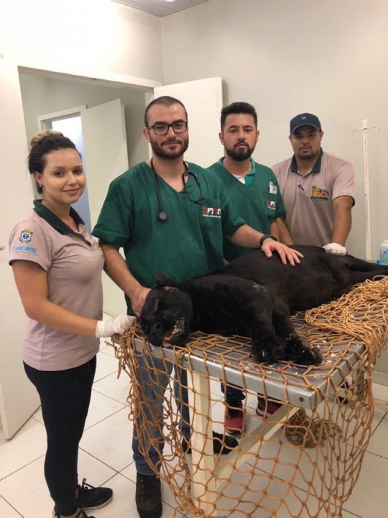 Equipe do Hospital Veterinário ajuda na transferência de onça idosa do Zoo de Cascavel