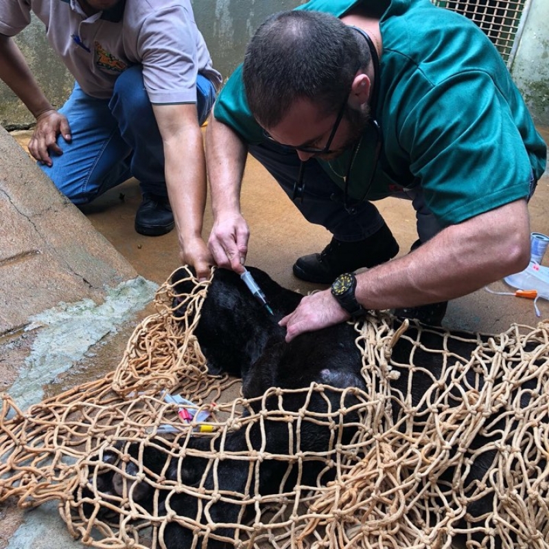 O trabalho de transferência teve o auxílio do médico veterinário anestesista do Hospital Veterinário e professor do Centro Universitário FAG da disciplina de Anestesiologia, Rodrigo Neca Ribeiro. "Sempre é um desafio anestesiar animais selvagens ainda mais quando se trata de um paciente mais que especial como a Pretinha", expressa Rodrigo. O recinto que agora abriga a onça é novo e não estará aberto à visitação. Não há rampas ou qualquer outro obstáculo que possa dificultar o dia a dia dela.