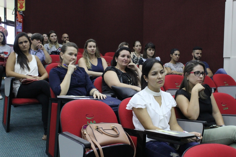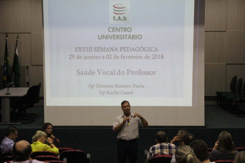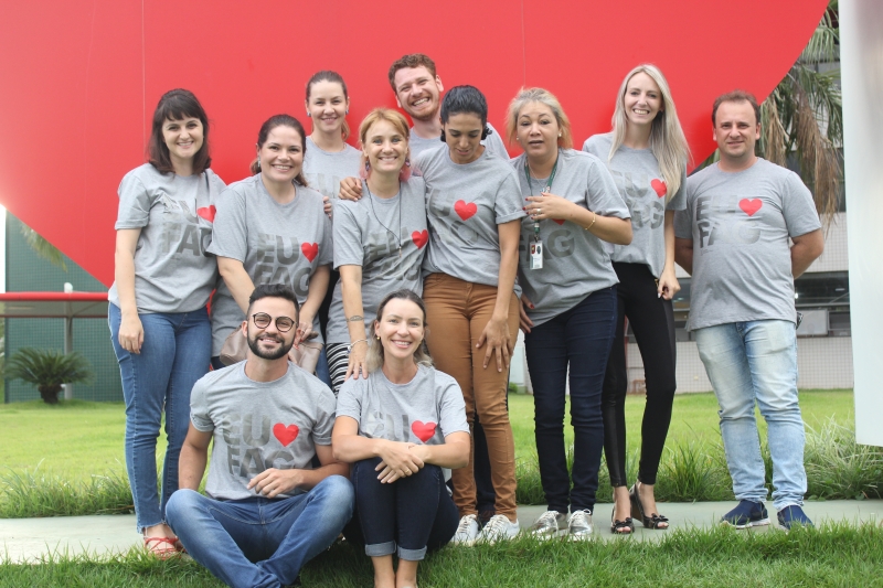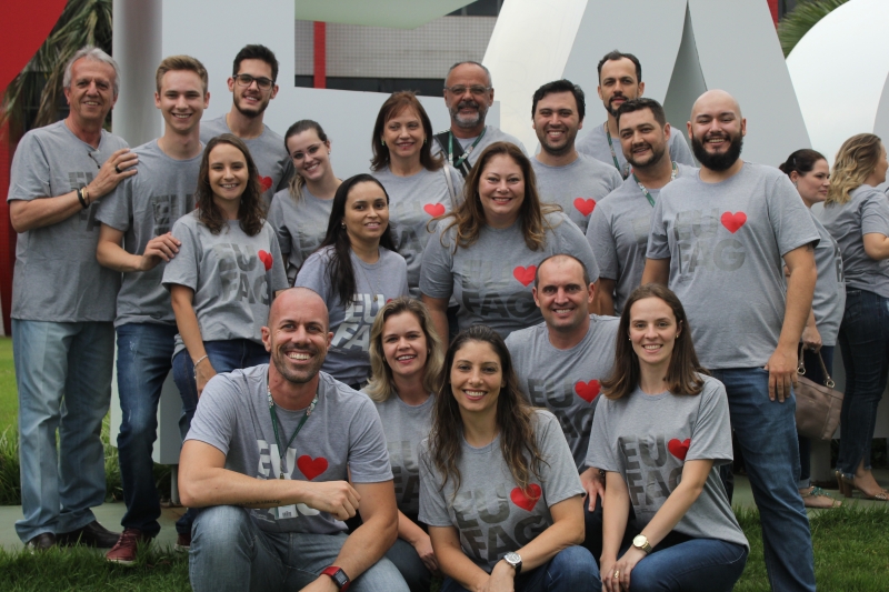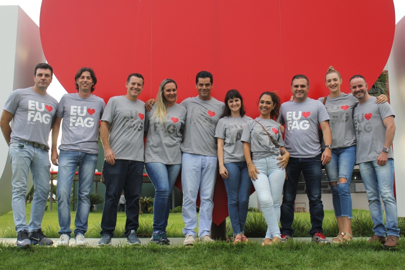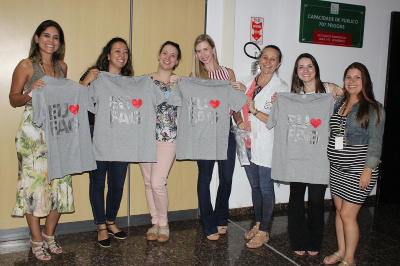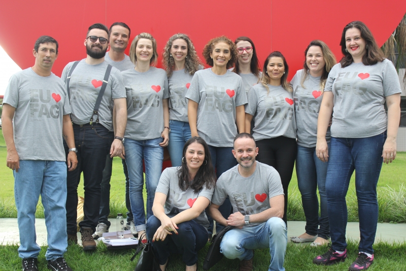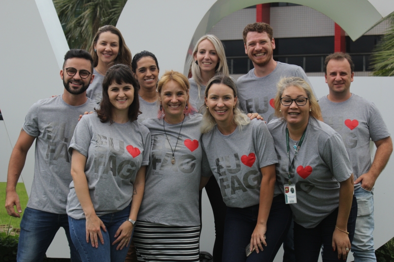 Retornando às atividades, professores do Centro FAG participaram da Semana Pedagógica. Na segunda (29), eles foram recepcionados pela Direção, no Anfiteatro da Reitoria e receberam, como boas-vindas, uma camiseta personalizada "Eu Amo FAG".