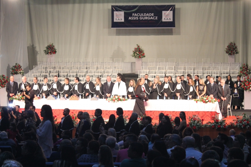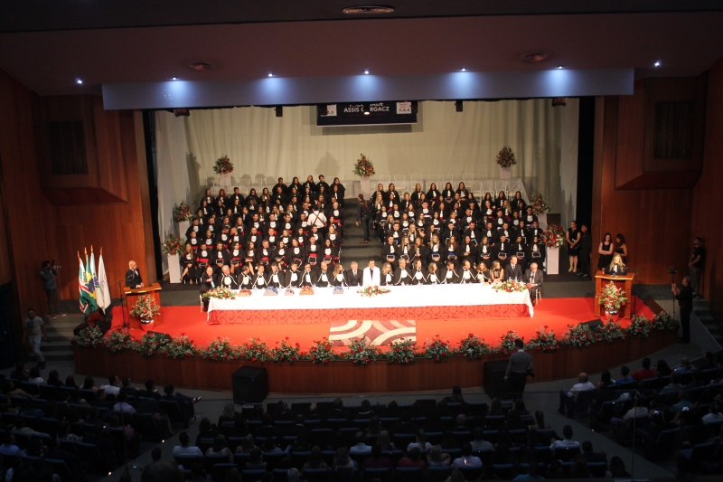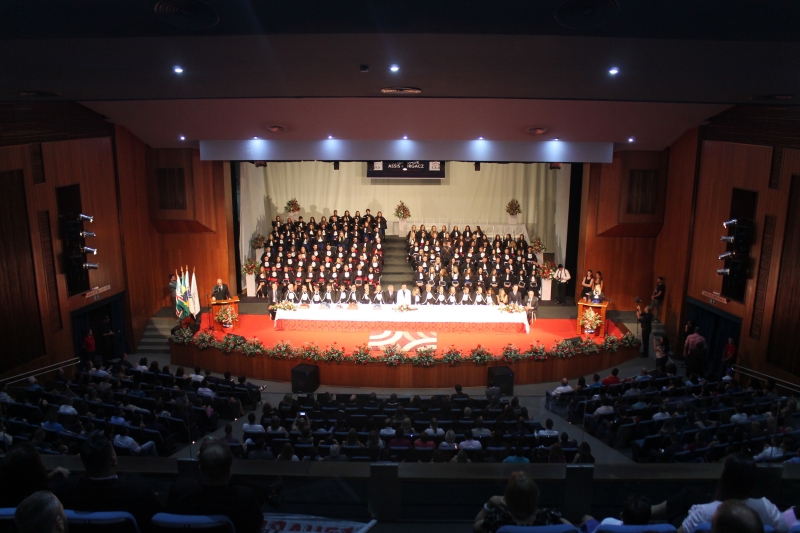 Ao todo, 250 formandos dos cursos de Administração, Direito, Letras Português e Libras, Gestão de Recursos Humanos, Pedagogia, Tecnologia em Agronegócio, Tecnologia em Gestão Financeira, Ciências Contábeis, Publicidade e Propaganda e Jornalismo receberam a outorga de grau das mãos do diretor geral Osmar Antônio Conte. O presidente da mesa estava acompanhado do representante da Fundação Assis Gurgacz Ildo Bombardelli, coordenadores dos cursos, professores homenageados e demais autoridades.