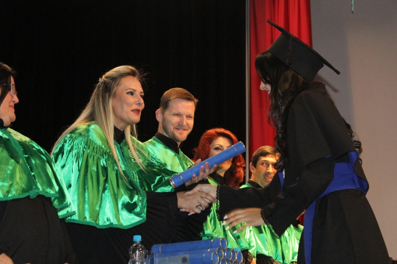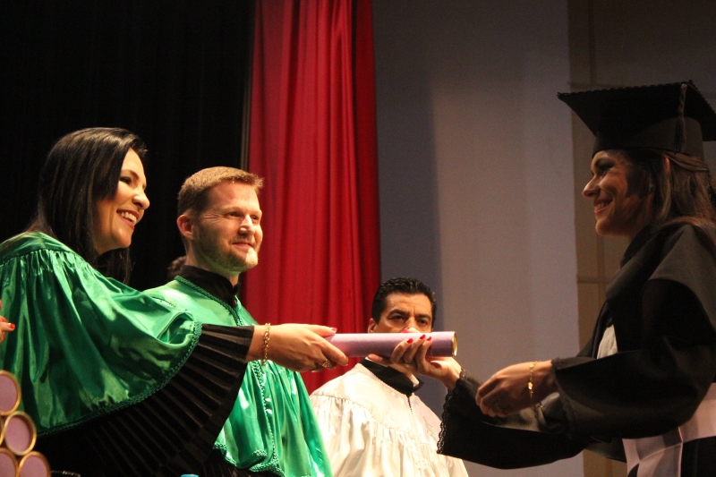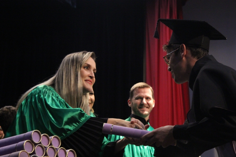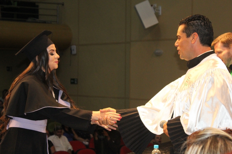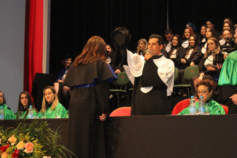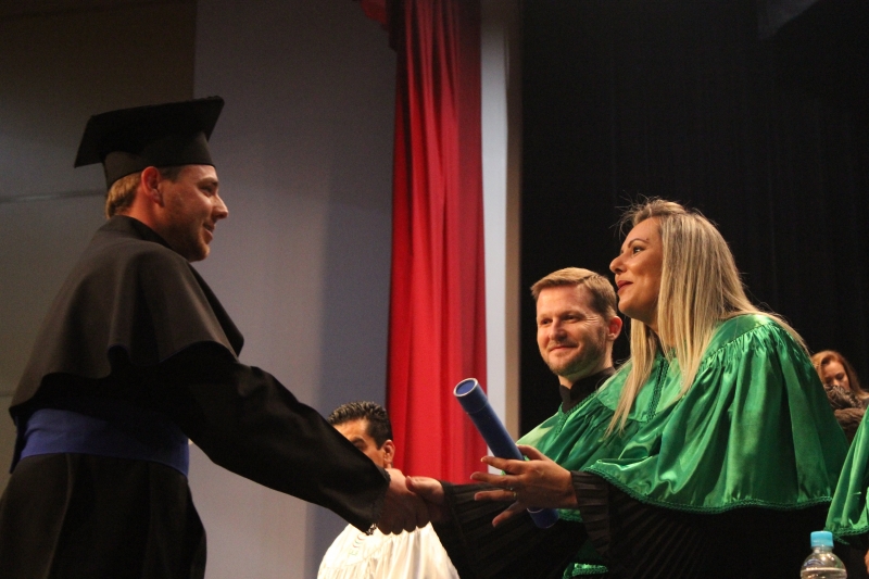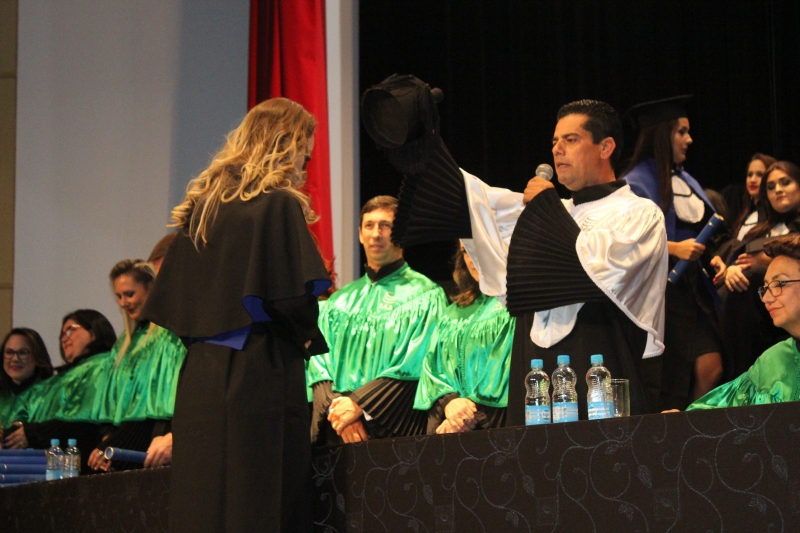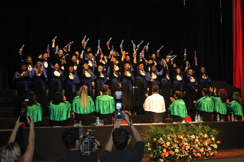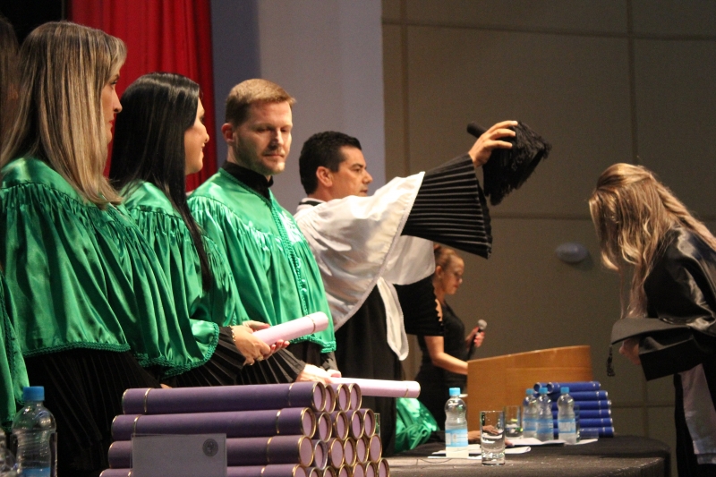 O Anfiteatro da Reitoria do Centro FAG foi palco da colação de grau dos cursos de Letras e Pedagogia. Nos dias 01 e 02 de fevereiro, 96 formandos receberam a outorga de grau em cerimônias presididas pelo Pró-Reitor Acadêmico, Afonso Cavalheiro Neto.