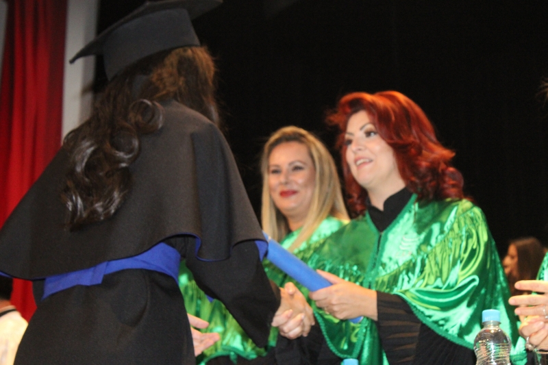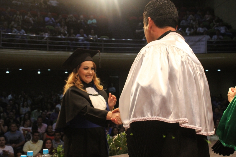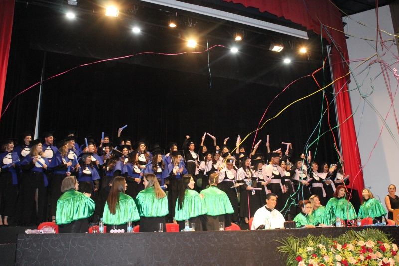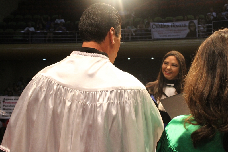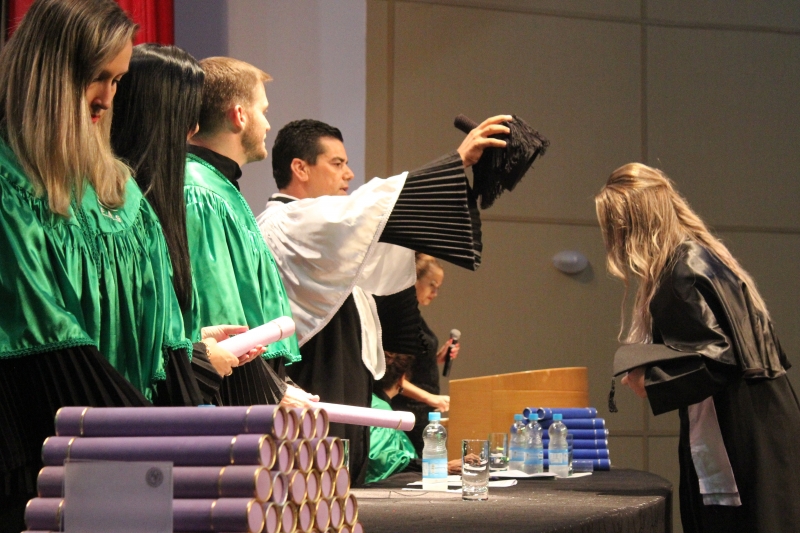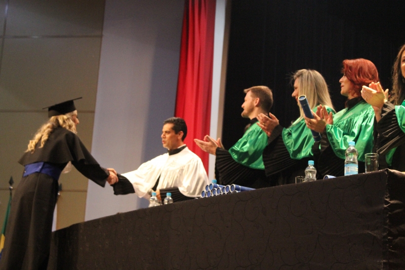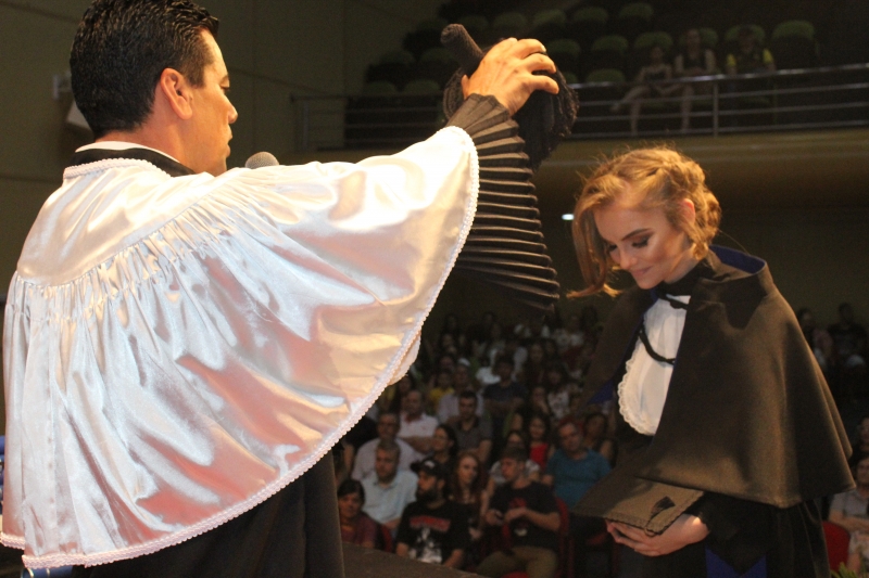 Ângela Betina Remonti, de Pedagogia, retratou a turma em seu discurso. "Falar desta turma é uma responsabilidade imensa. Dentre estes jovens, estão pessoas guerreiras, batalhadoras, dedicadas, focadas e determinadas, mas, além disso, são criativas, inovadoras, sonhadoras, brincalhonas e divertidas, como todo bom pedagogo têm de ser. No decorrer dos quatro anos, construímos grandes amizades, aprendemos a respeitar o diferente, descobrimos personalidades e notáveis qualidades. Durante nossa jornada surgiram dificuldades, é claro. Mas tínhamos uns aos outros para nos apoiar, aconselhar e acalmar. Foram momentos de tensão, mas também, de superação", descreveu.