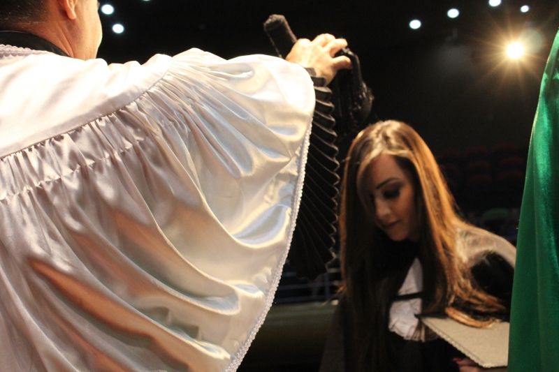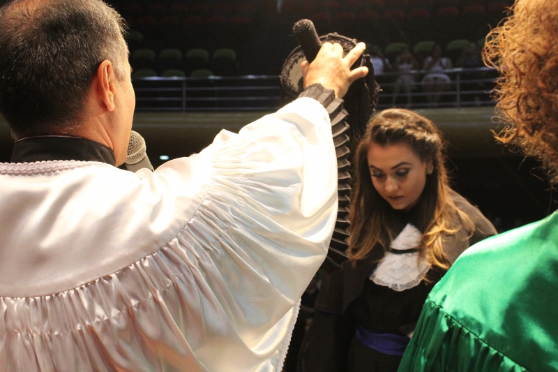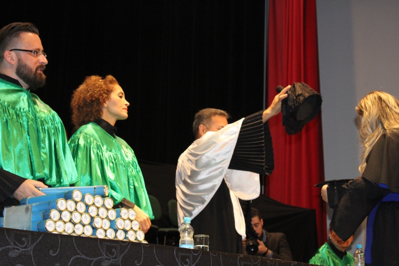 A adrenalina por trás das cortinas era grande, mas, mesmo com a ansiedade tomando conta, a formanda Clarisse Bussolaro manteve a calma e falou sobre chegar a até aqui. "Isso tudo é mágico. É uma realização pessoal e profissional também. Sou de Santa Tereza, não é longe, mas mesmo assim deixava de fazer muitas coisas com minha família por um sonho. Eu amo a Psicologia, e tudo valeu a pena", declara.