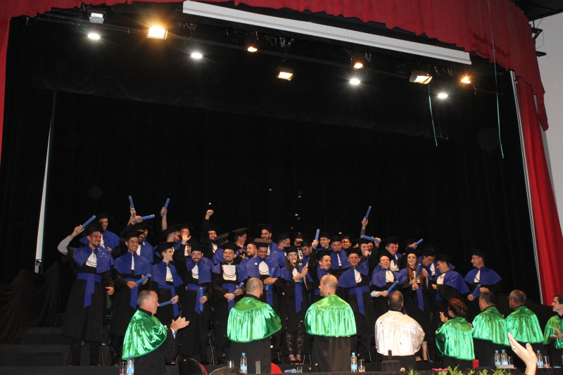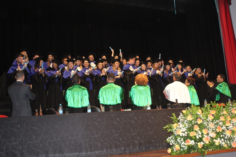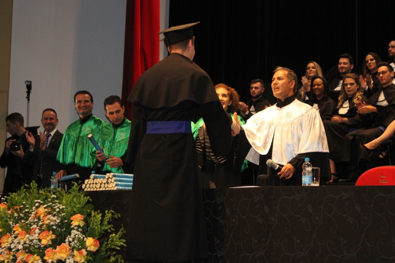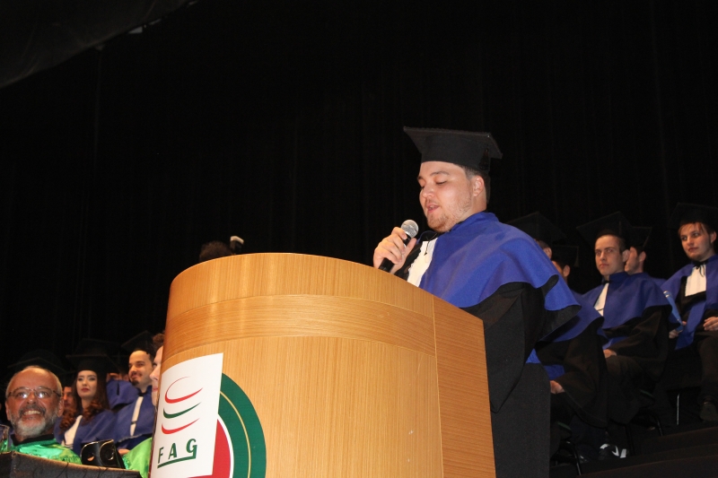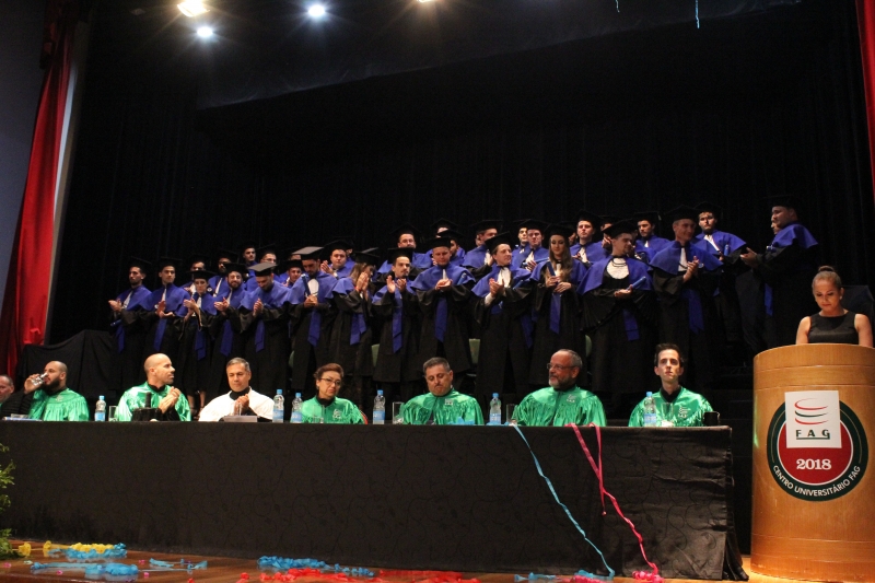 Após cinco anos de empenho e dedicação durante a graduação, formandos dos cursos de Psicologia e Engenharia Mecânica comemoraram na cerimônia de formatura. As solenidades foram realizadas no Anfiteatro da Reitoria do Centro FAG: Psicologia à tarde e Engenharia Mecânica à noite. O Vice-Reitor da Instituição, Sérgio De Angelis, presidiu a sessão.