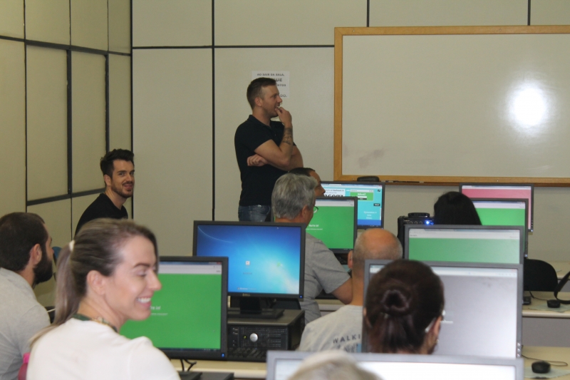 Ensinar de forma mais engajada e divertida. Esta foi a proposta apresentada pelo professor Ricardo Krupiniski, coordenador do NAD (Núcleo de Apoio ao Docente), durante uma oficina ministrada aos professores e coordenadores de cursos da FAG Toledo na quarta-feira (7). Os docentes conhecerem e interagiram com o Kahoot, um jogo com regras que prendem a atenção dos participantes com uma plataforma que pode ser alimentada com informações, perguntas e respostas com o conteúdo de cada disciplina. O programa foi bem avaliado pelos professores, que se divertiram com a disputa simulada durante a oficina. "Eu vejo a possibilidade de uso deste jogo de forma esporádica, para momentos mais descontraídos, como o fim de uma aula ou mesmo para uma revisão de provas. Se bem usada pode ser uma ferramenta útil no processo ensino-aprendizagem", avaliou o professor Evandro Machado do colegiado de Publicidade e Propaganda.