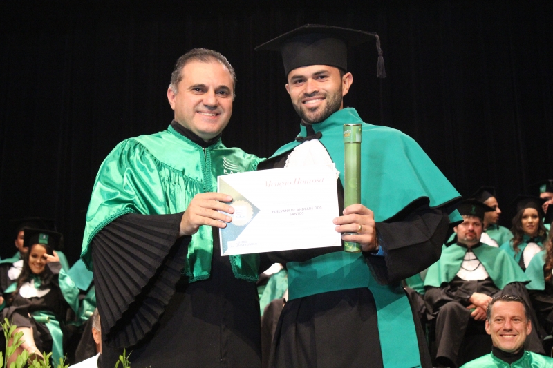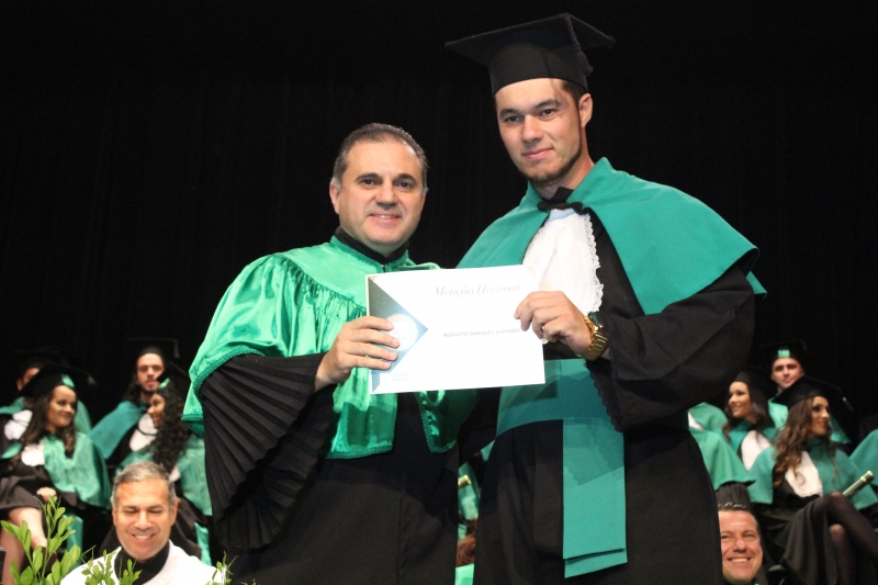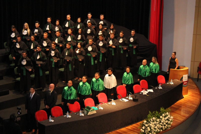 Os formados, Augusto Marques Bernardi, Edelvany de Andrade dos Santos, Queli Ghilardi Cancian e Rosemeri Züge receberam a láurea acadêmica, pois obtiveram a maior média de notas do curso. As menções honrosas foram entregues pelo coordenador do curso, Vitor Cesar Moreira.