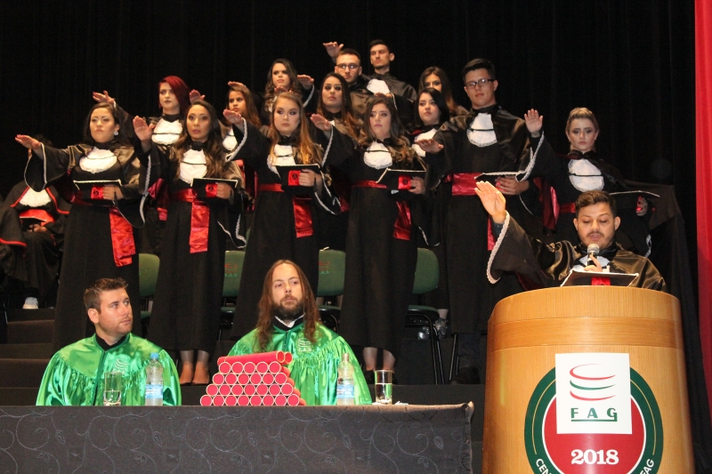 Formandos dos cursos de Jornalismo e Publicidade e Propaganda do Centro Universitário FAG participaram da colocação de grau realizada na quinta-feira, dia 08, no Anfiteatro da Reitoria.