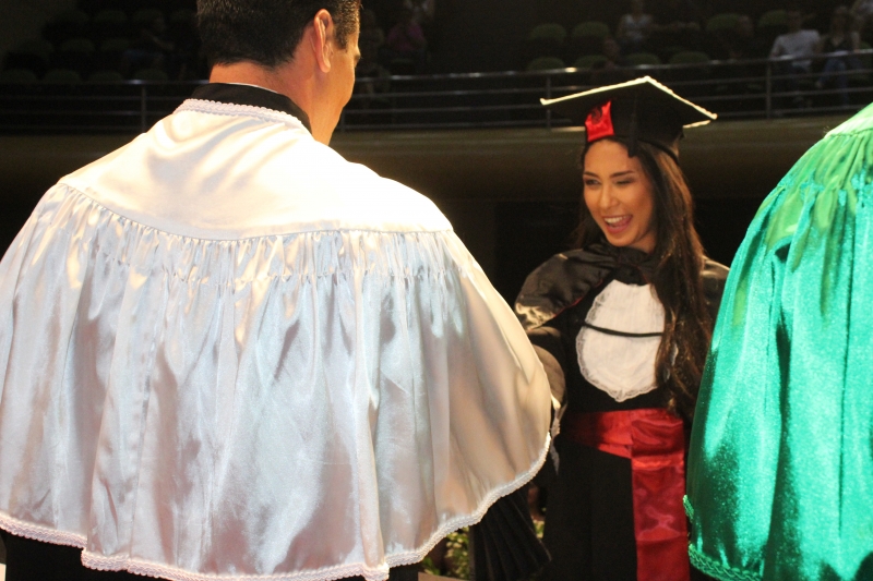 Para a laureada, Camila Agner, do curso de Jornalismo, a graduação foi bem mais que quatro anos. "A minha jornada no jornalismo começou muito antes da faculdade. No fundo, eu sempre senti que nasci para ser jornalista. Por algum motivo, desviei o caminho... Mas Deus sabe bem o que faz: a caminhada no Direito só me deu mais força e maturidade para que eu chegasse ao jornalismo mais aberta pra absorver cada experiência. Aos poucos, as oportunidades foram surgindo, as paixões aflorando, o reconhecimento aparecendo... Senti, definitivamente, que eu tinha mesmo nascido para ser jornalista. O tempo passou. Quatro anos passaram, realmente, voando. Foram, sim, longos e difíceis anos. Sofri, chorei, achei que não daria conta e até pensei que estava muito 'velha' para largar uma coisa e recomeçar. Mas recomecei. Me reconheci, além de jornalista, como uma mulher forte, decidida, que batalha pela realização dos sonhos e que nunca se acomoda - sempre planeja alçar voos mais altos. Ontem, tive a chance de receber a confirmação de que tudo valeu a pena. Terminei a faculdade com a sensação de dever cumprido", manifestou.